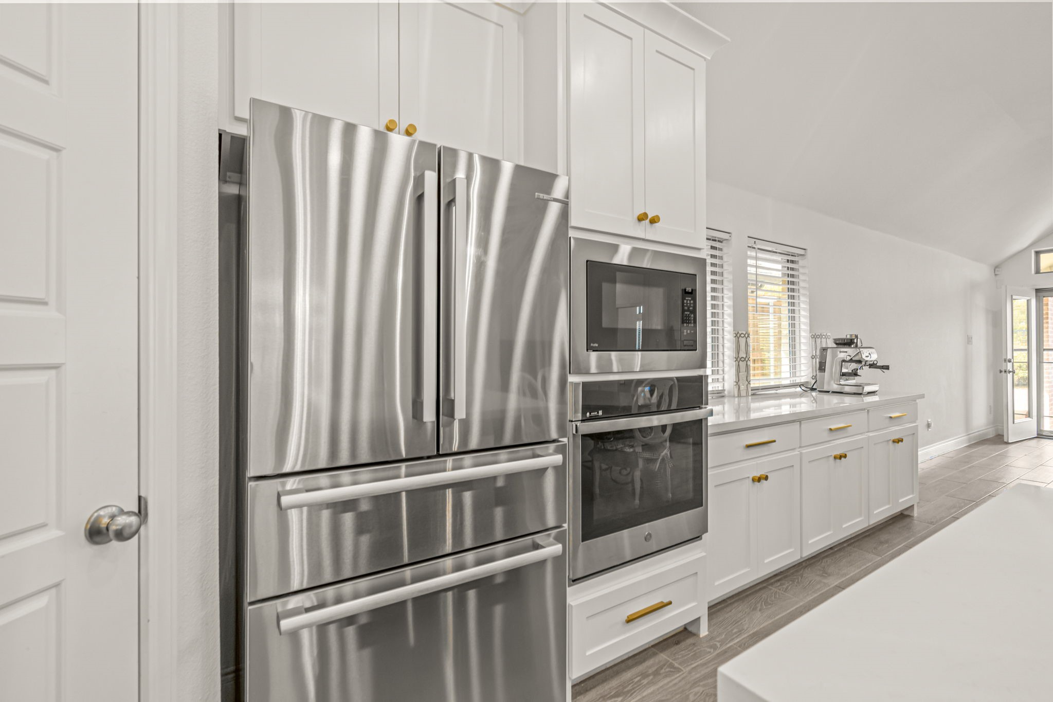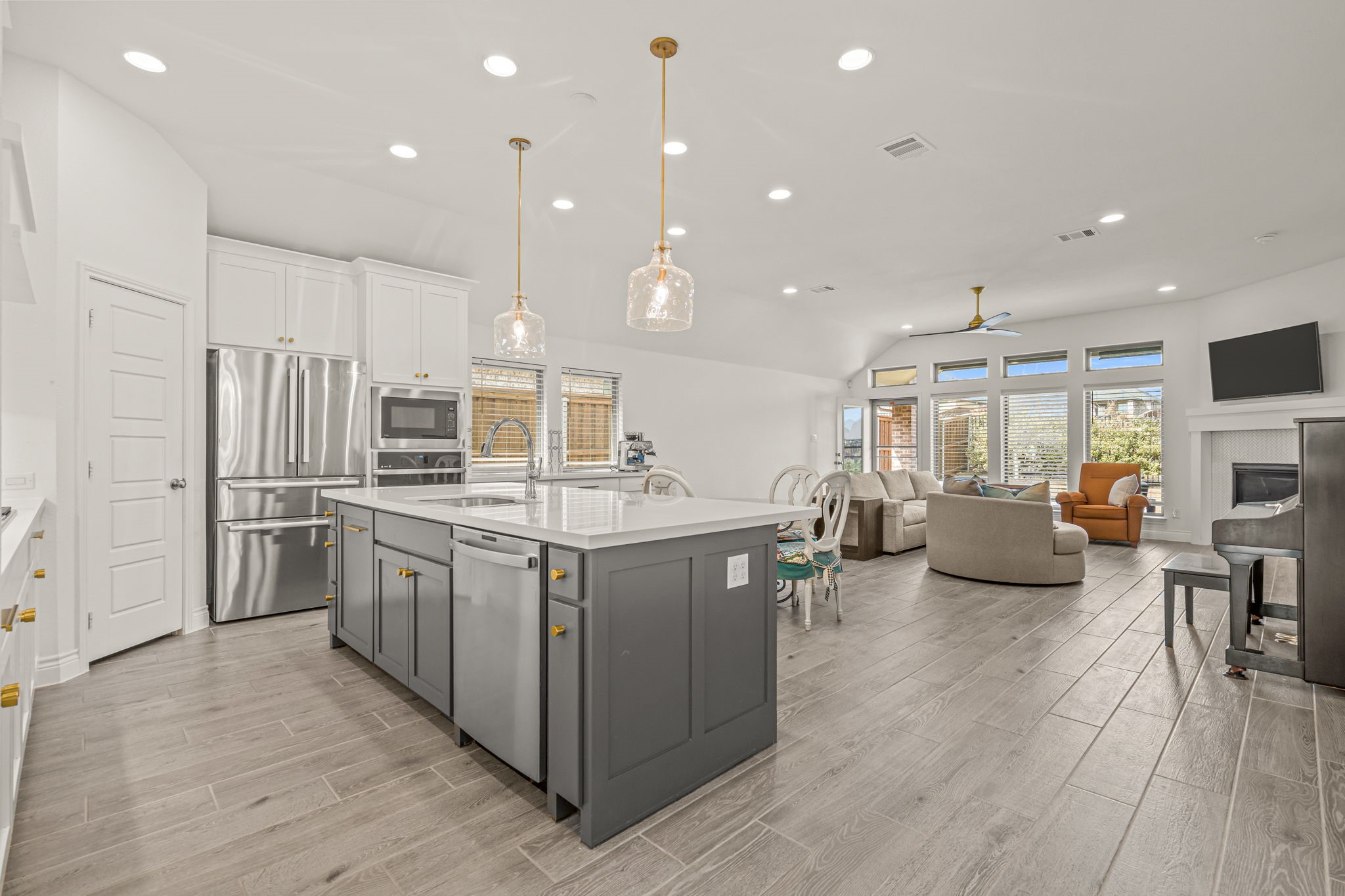 The Sellers have thoughtfully enhanced the home with upgraded pendant lighting, updated cabinet hardware throughout, stylish ceiling fans, and window coverings already in place. The kitchen is anchored by a premium Thermador gas cooktop, with a 4-year-old Bosch refrigerator that is negotiable. The LG washer and dryer will convey with the home, along with the mounted TVs and their mounts.