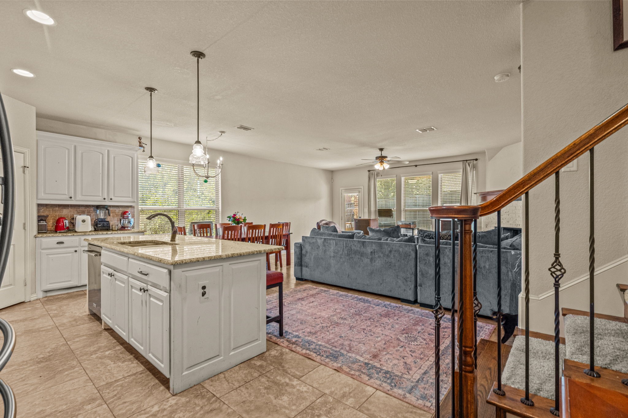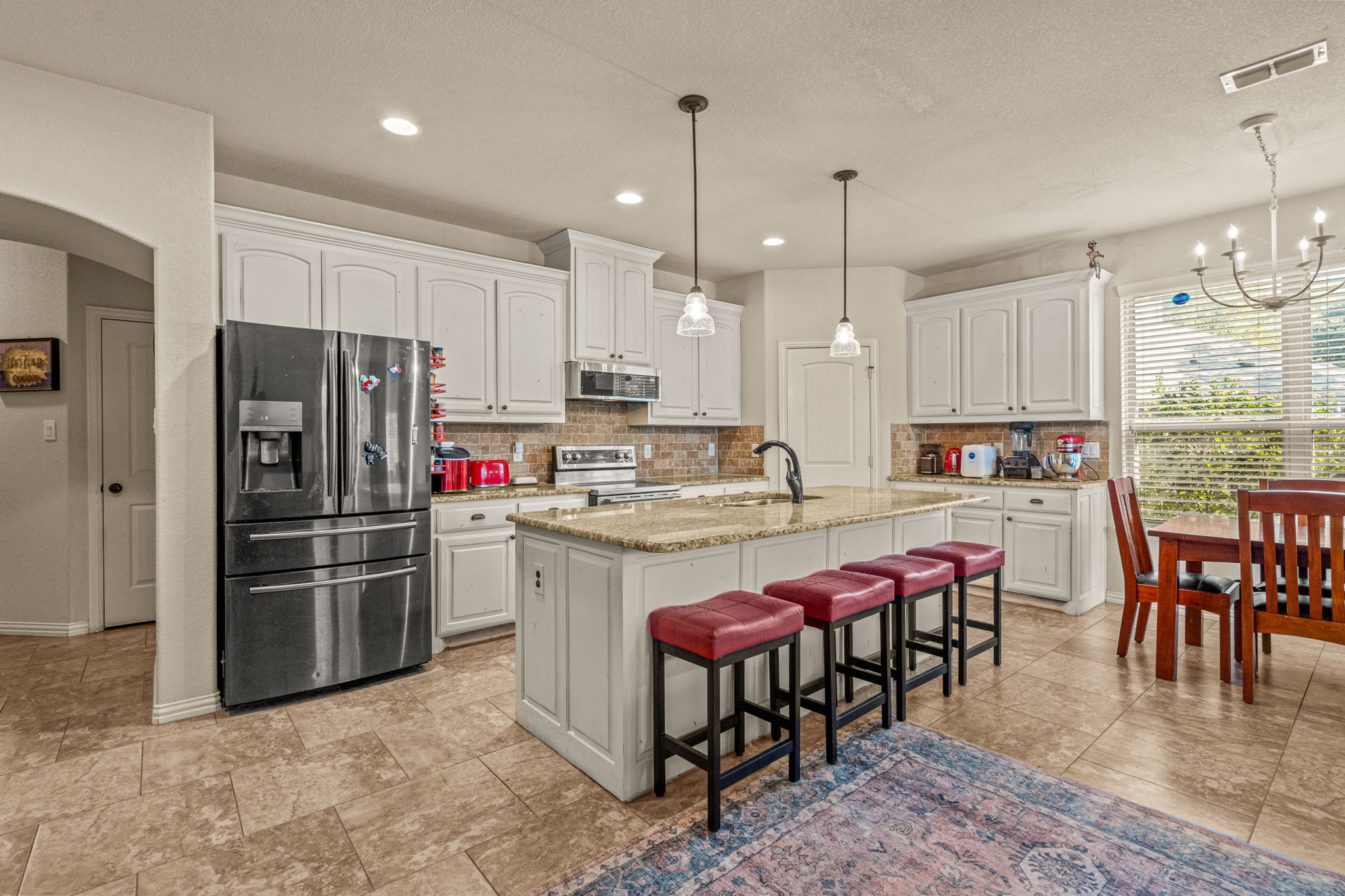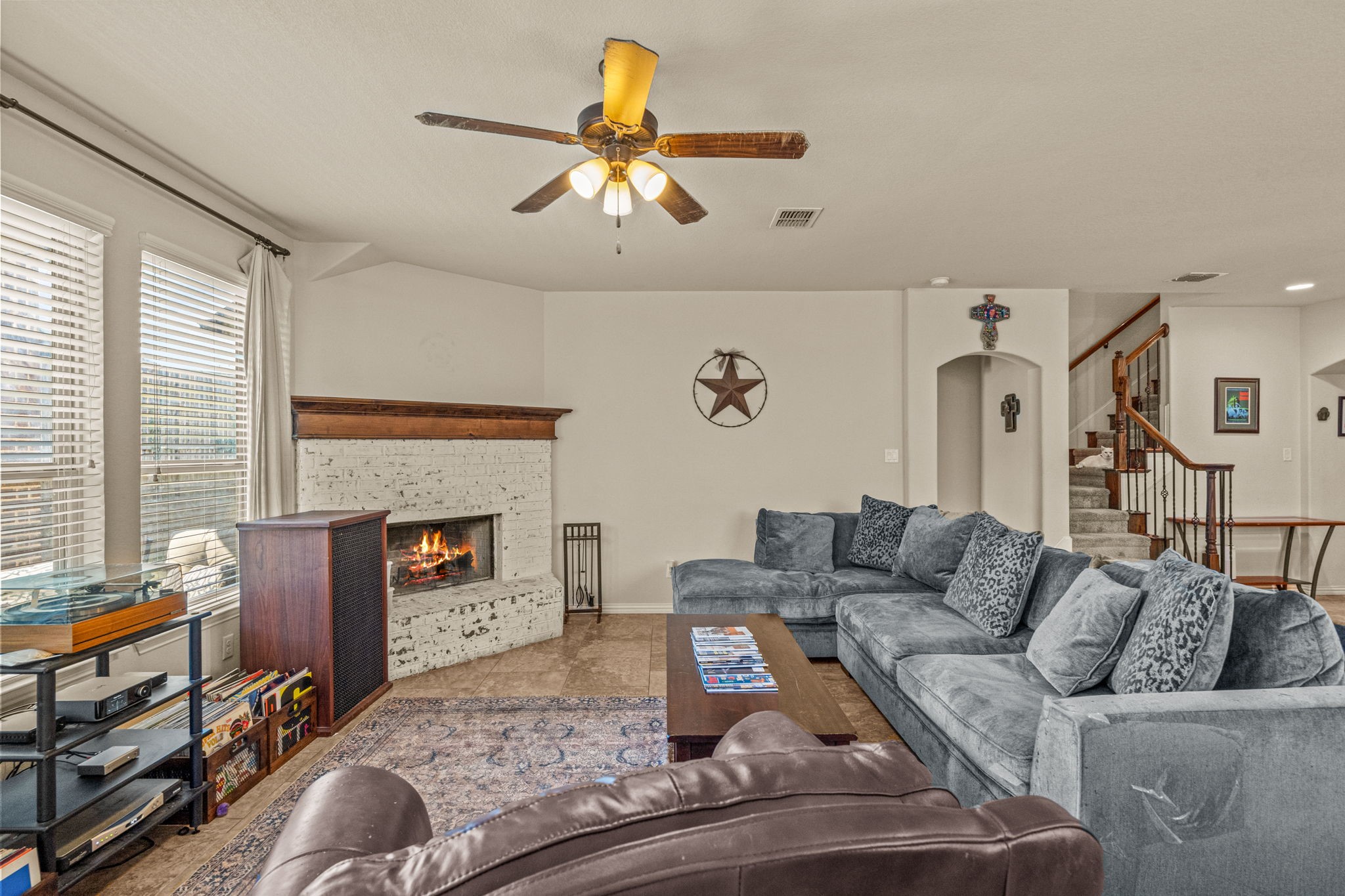 Gated neighborhood, Azle ISD, just blocks from Eagle Mountain Lake with quick access to Hwy 199! Tucked away on a quiet cul-de-sac and surrounded by a peaceful wooded backdrop, this home offers both privacy and convenience. With 2,466 sq. ft. of thoughtfully designed living space, the layout features 4 spacious bedrooms, 3 full baths, and an open-concept kitchen, living, and dining area perfect for everyday living or entertaining. The first-floor primary suite is complemented by two additional bedrooms and a full bath, providing ideal main-level living. Upstairs, you'll find a fourth bedroom, full bath, and a flexible bonus space that can serve as a game room, guest suite, or in-law retreat. The well-appointed kitchen showcases new KitchenAid stainless steel appliances, a large center island with seating, walk-in pantry, and abundant cabinet storage. The living room features a cozy wood-burning fireplace, while new carpet enhances all bedrooms and the upstairs area. Located just 16 miles from Dickies Arena, 14 miles from the historic Fort Worth Stockyards, 15 miles from the Cultural District, and 33 miles from DFW Airport, this home offers the perfect balance of quiet neighborhood living and easy city access. Nestled within a gated community near shopping, dining, and recreation, this home truly blends comfort, privacy, and convenience. **Refrigerator, washer, and dryer are included--making move-in day a breeze!
