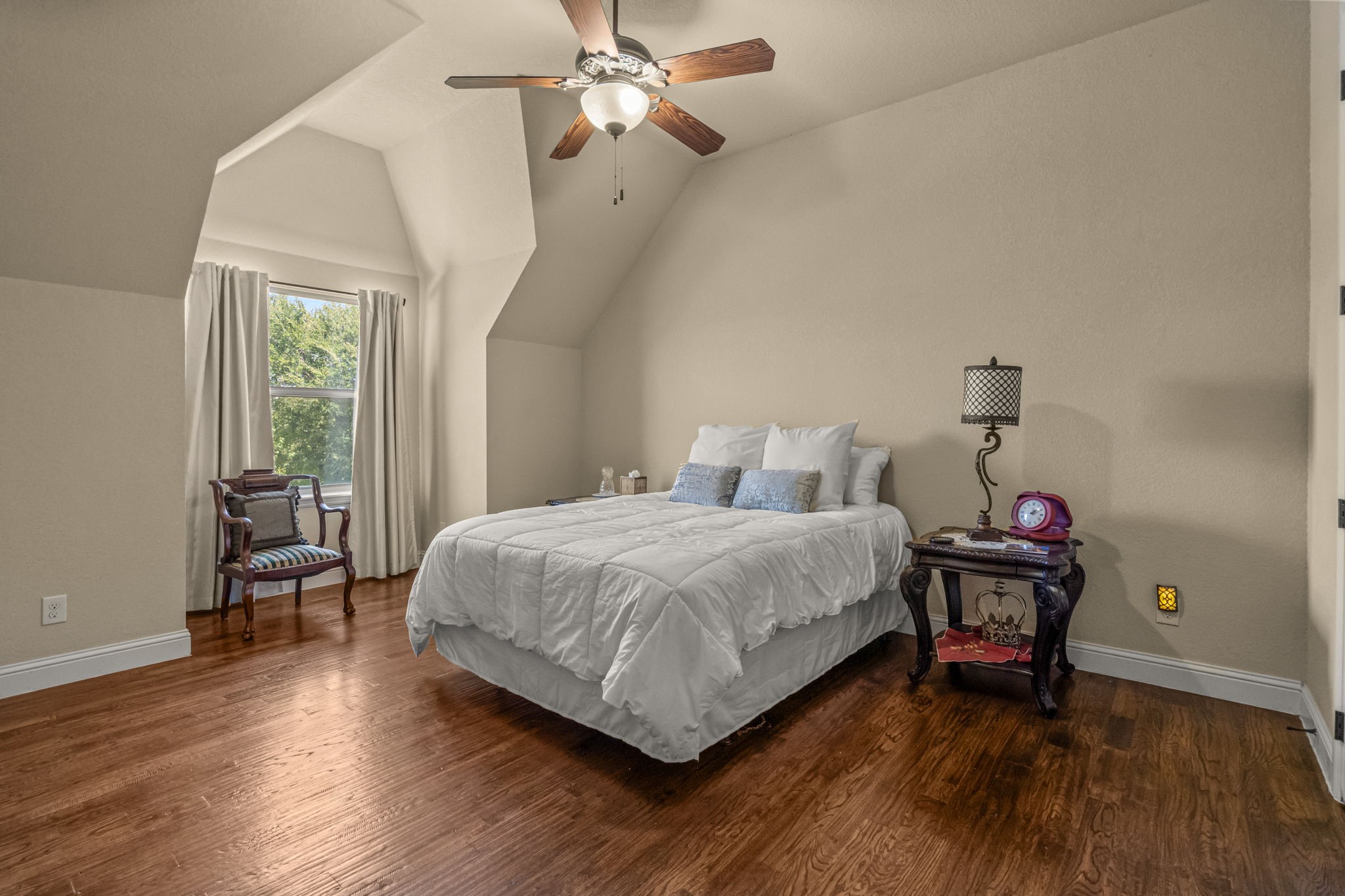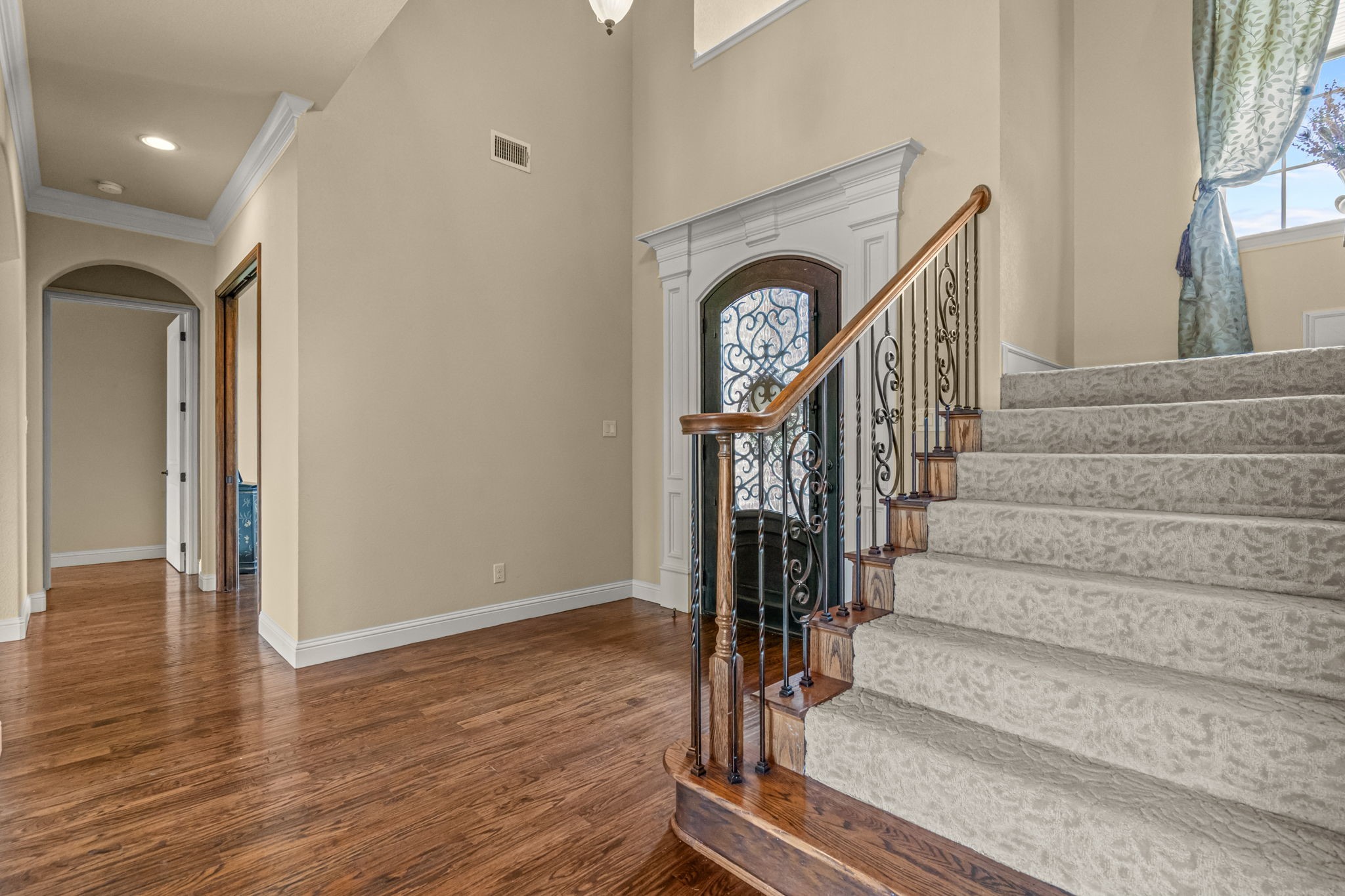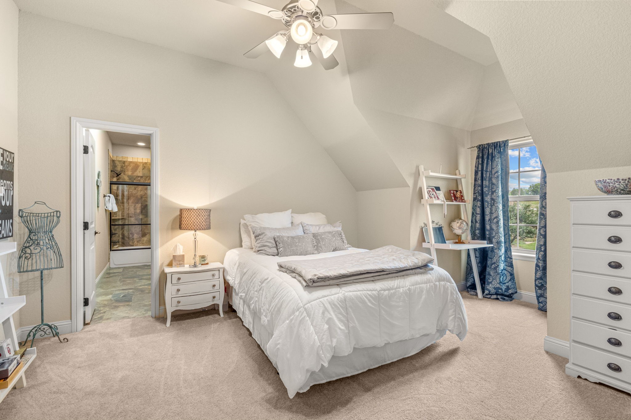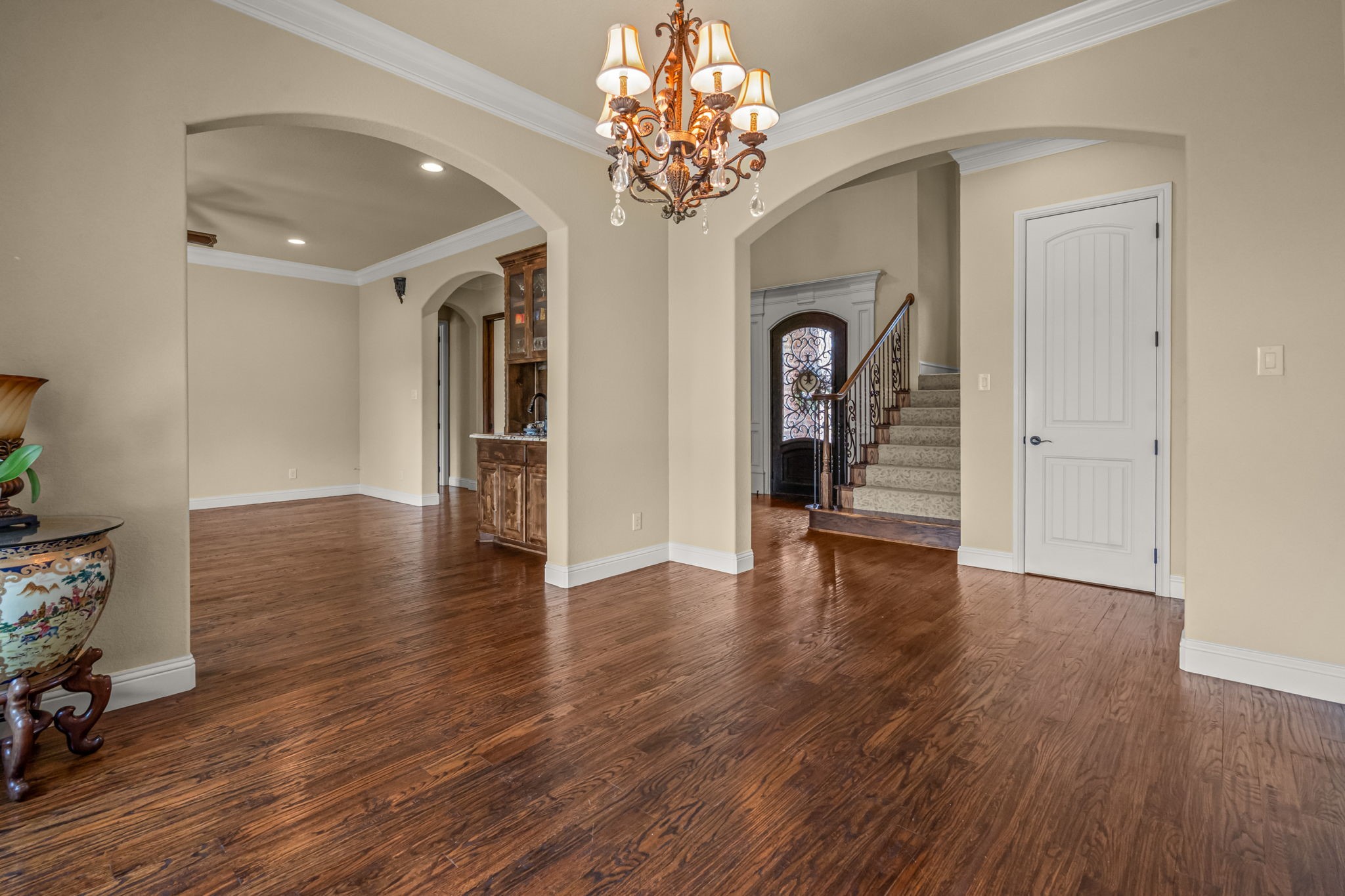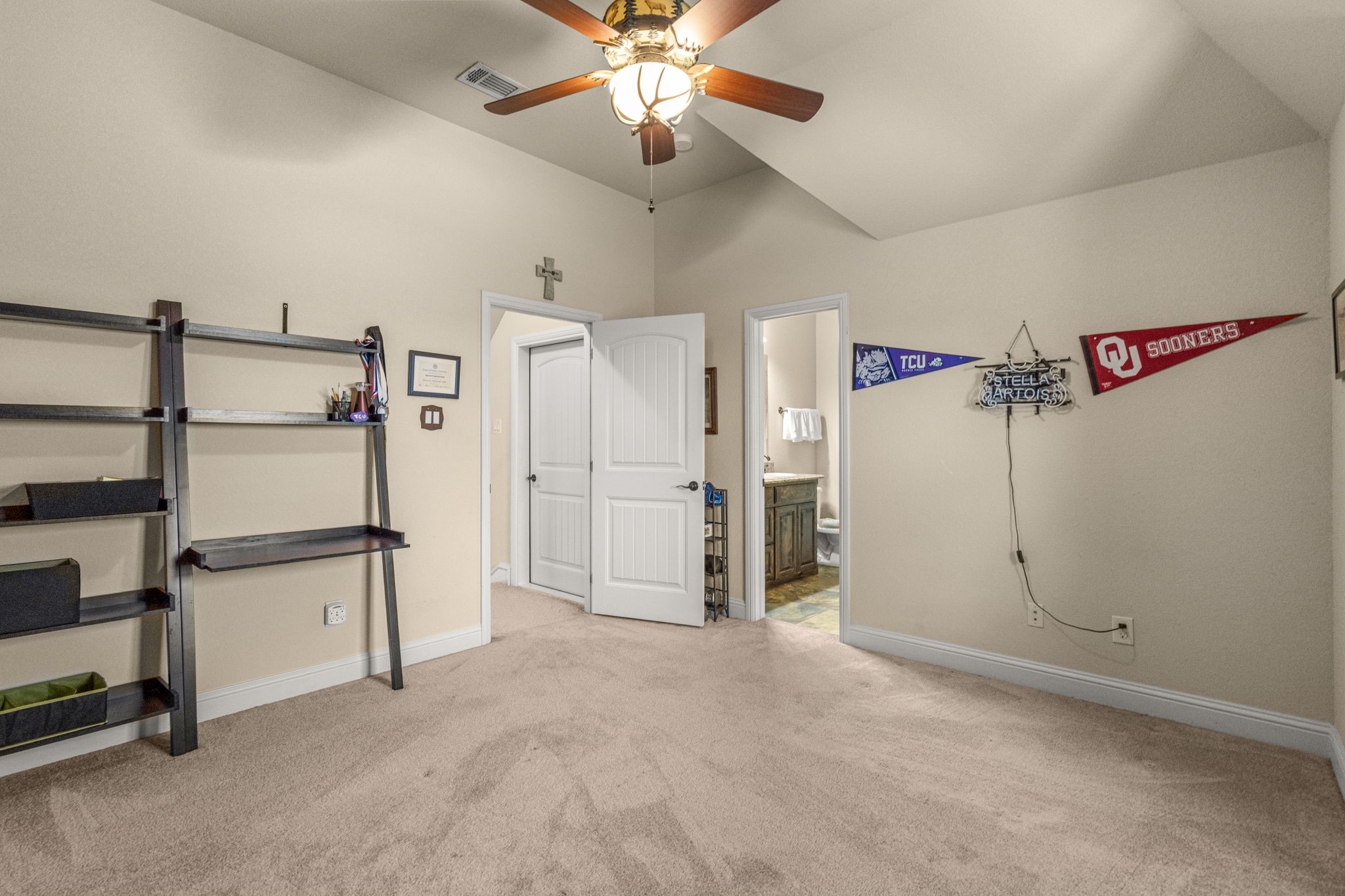 Perched atop a scenic hill in the gated community of Bella Flora - Bella Ranch, this exceptional property spans 2.87 acres and captures sweeping skyline views of Fort Worth. Thoughtfully designed for both everyday living and effortless entertaining, the home offers 3,722 square feet of beautifully appointed space, including 4 bedrooms and 4 full bathrooms. The main level features a serene primary suite, a private guest bedroom, a dedicated home office, and both formal and casual dining areas. The formal dining opens to the living room and includes a stylish wet bar. At the heart of the home, the kitchen impresses with a large center island with prep sink, double ovens, and generous storage. Upstairs, you'll find two spacious ensuite bedrooms and a second living area--ideal for a game room, media lounge, or teen retreat. Step outside to enjoy wide-open green space, a covered patio with a built-in grill, and a full sports court equipped for basketball, tennis and volleyball --complete with a rebounding net and lights for nighttime play. There's plenty of room to add a custom pool, and with ACC approval, the lot also allows for a guest house or workshop. Additional highlights include hand-scraped hardwood floors, a 4-car garage, and a side-entry porch with direct access to the kitchen--perfect for everyday convenience. Well: new pump in 2019, new control box in 2020. This is Texas living at its finest - luxury, land, and lifestyle, just minutes from Fort Worth's top-rated private schools, premier shopping, dining, and with convenient access to the property off 377. Foundation: Engineered post tension and pier.