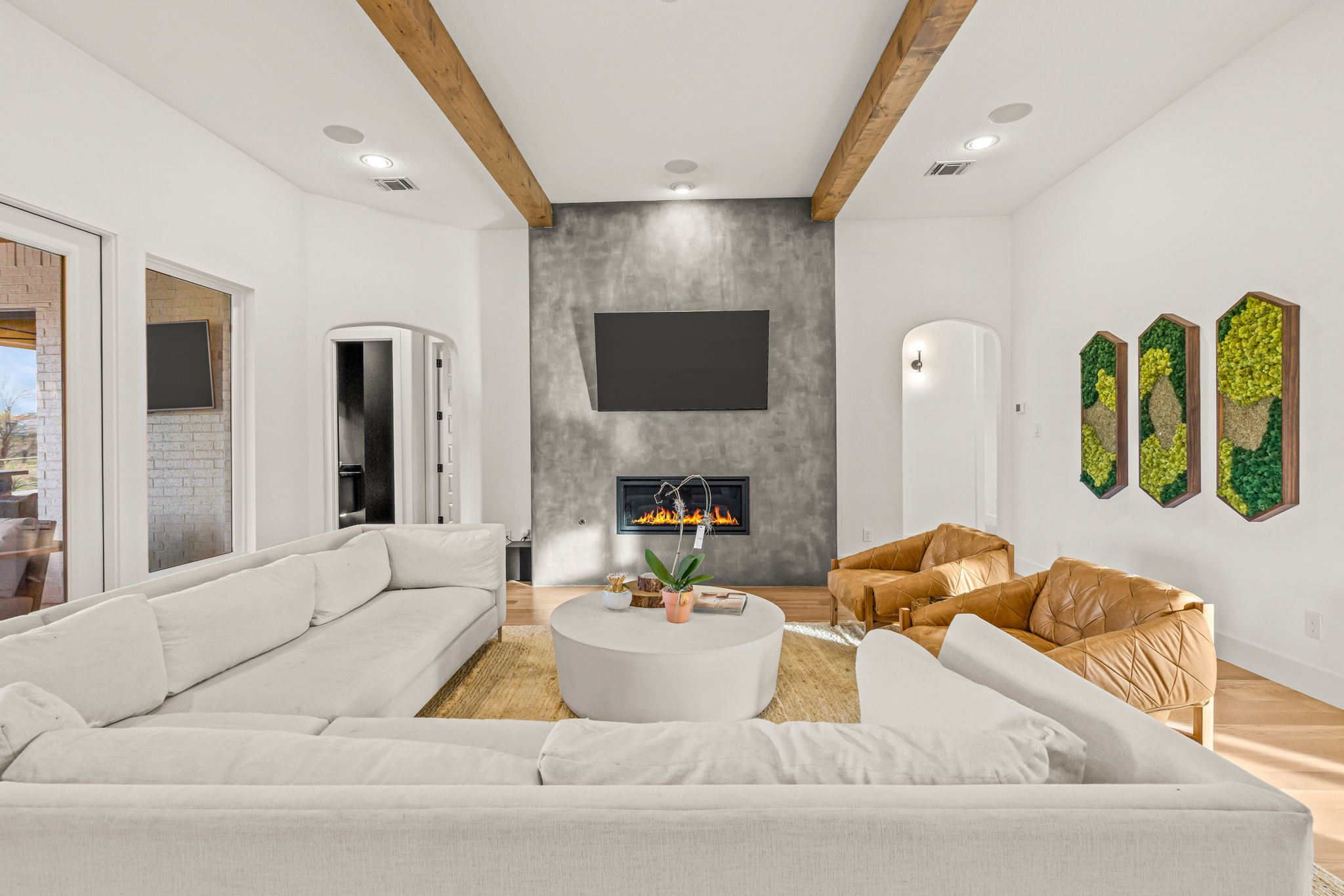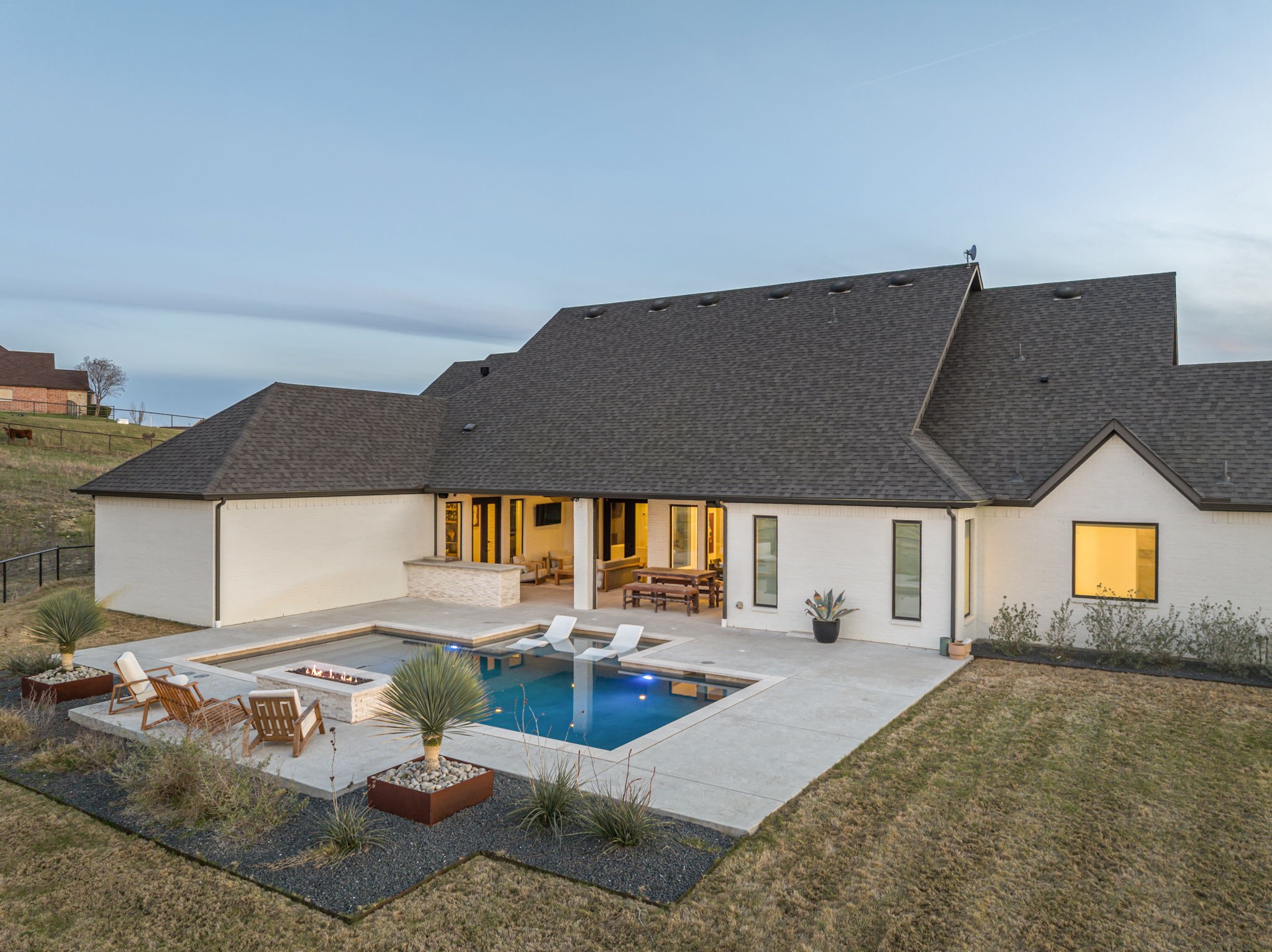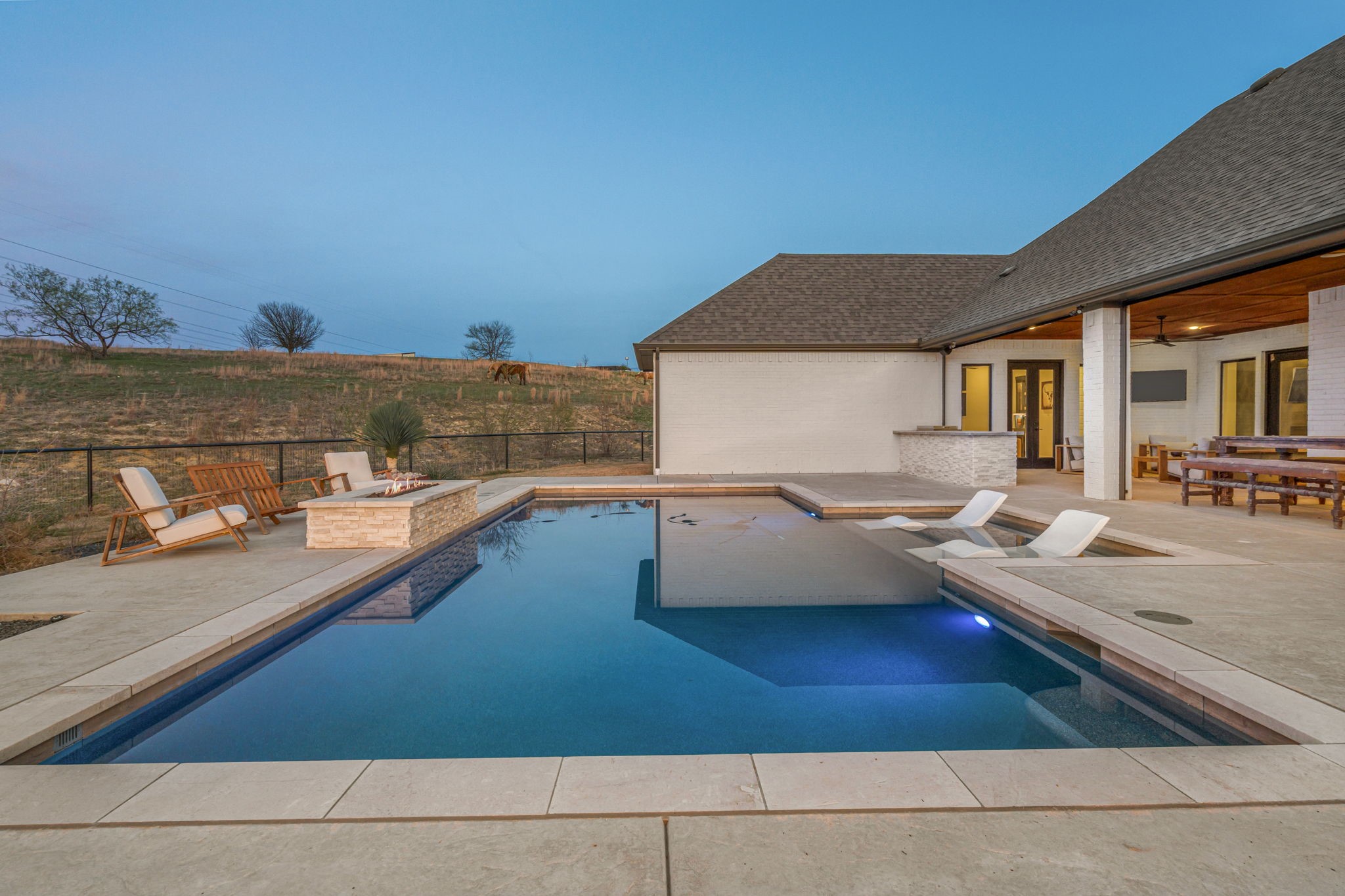 Outdoor living is equally impressive with a resort-style pool, water feature, outdoor fireplace, covered patio with dining and living space, and hibachi-style griddle. Expansive acreage provides privacy, sweeping views, and room to expand. Additional highlights include a full-property security camera system and access to highly regarded Aledo ISD.