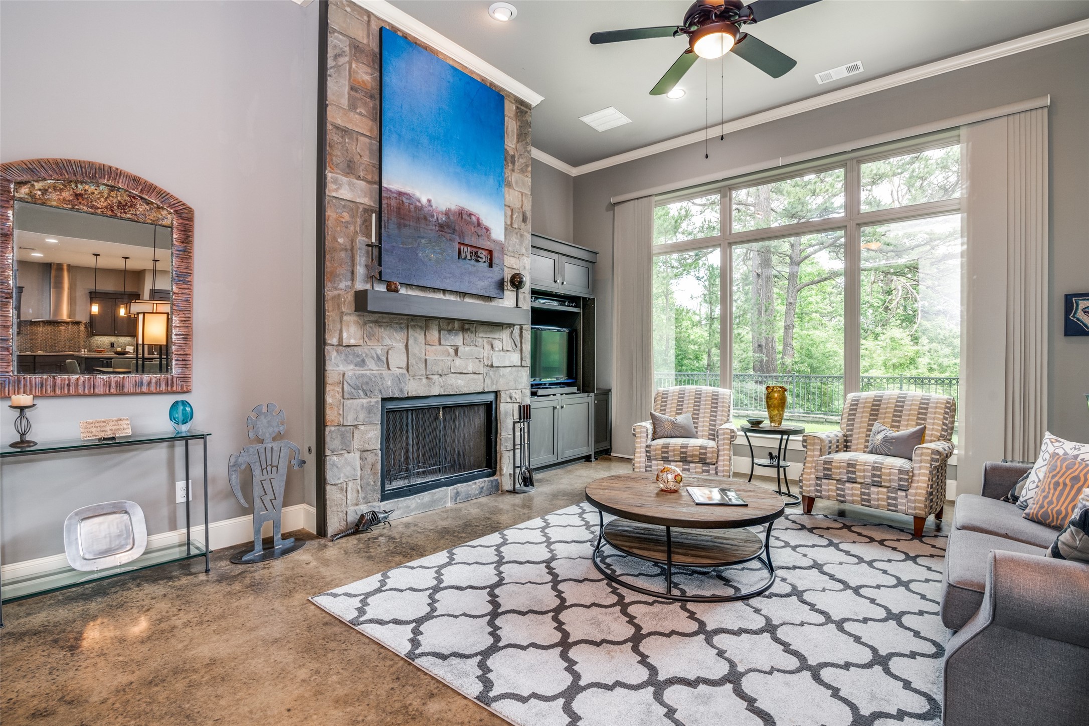 Set lakeside in the gated 2,177-acre retreat of Cross Pines Ranch - just 90 minutes from Dallas - this custom-built ranch-style residence presents 3 spacious bedrooms and 3 baths across 3,064 sq ft, surrounded by 5.02 serene acres. Designed by Gary Covert, AIA, the home blends refined simplicity with effortless countryside charm. Walls of windows bring the lake's calm edge into the living spaces, where a stone-clad fireplace anchors the open floor plan and invites relaxed gatherings. The kitchen is crafted for comfort and ease--natural stone counters, kitchen island, built-in pantry, and a seamless transition to the porch and yard make daily life and entertaining equally welcoming. Outside, the home embraces its setting with a covered porch overlooking the lake and expansive yard, mature trees, and the peaceful rhythm of nature. The 5-acre homesite offers rare privacy while granting full access to Cross Pines Ranch amenities: equestrian center with ranch horses, stocked fishing lakes, trail riding, a private clubhouse and pool, and full-time ranch staff maintaining the property and experience. For those who seek a true ranch lifestyle with elegant yet approachable living, this offering delivers both refuge and refinement in a community built for those who want life to move at their pace.