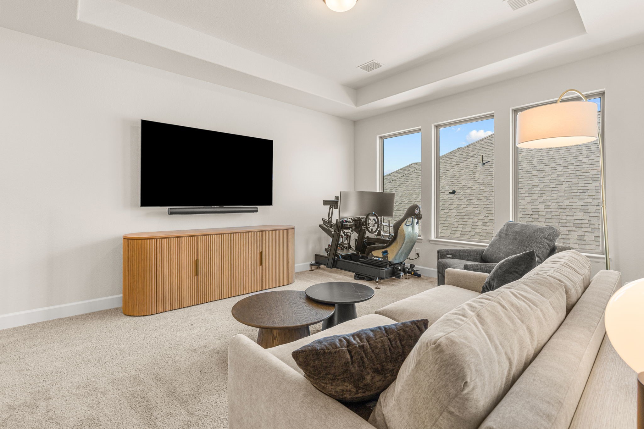 The current owners have further enhanced the home by finishing out an additional upstairs flex room, currently used as a home gym, adding even more versatility to the floor plan. The lighting package has also been upgraded with WiFi-enabled ceiling cam lights, allowing you to easily adjust brightness and color to match your preferred mood or ambiance.