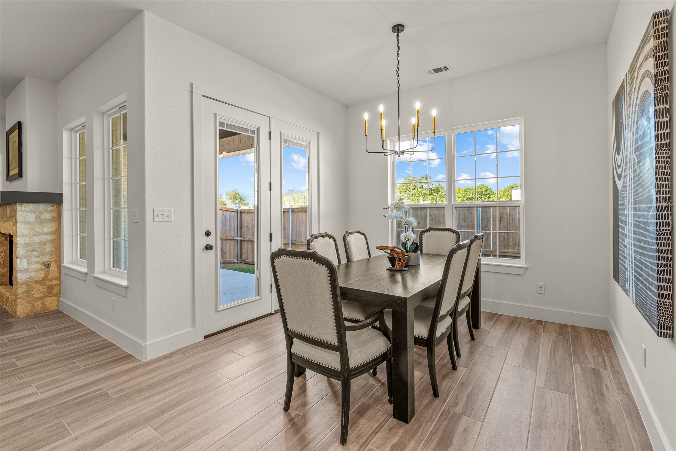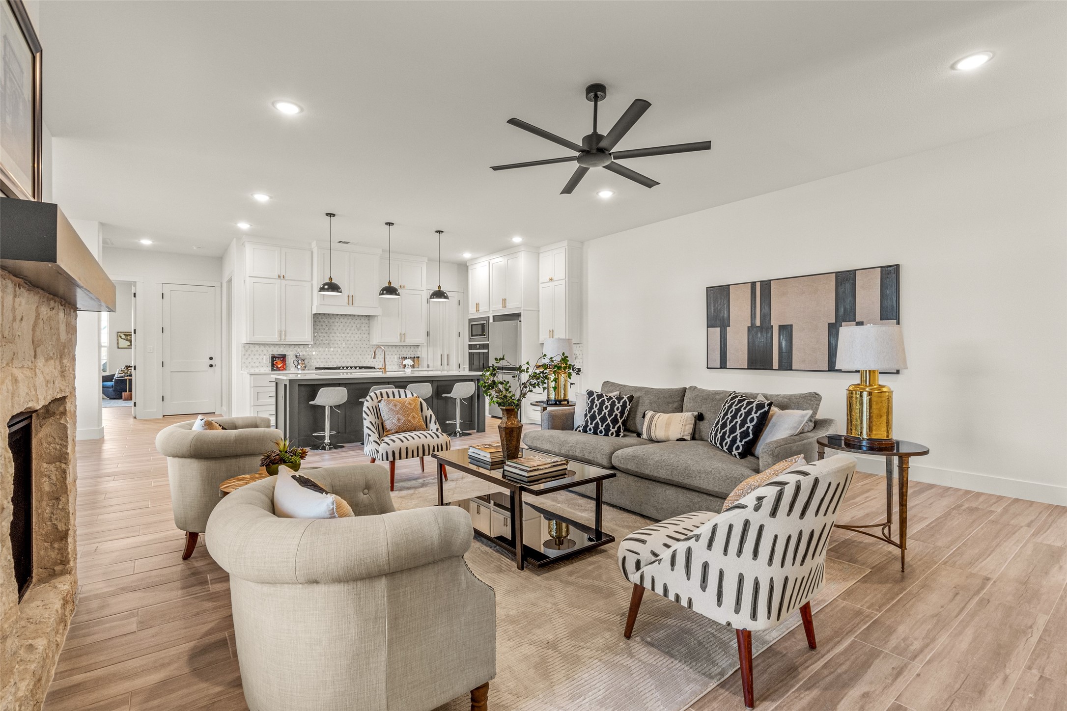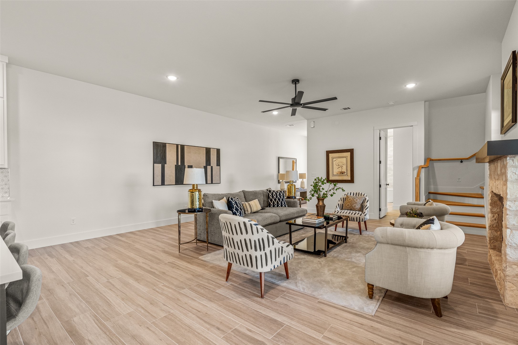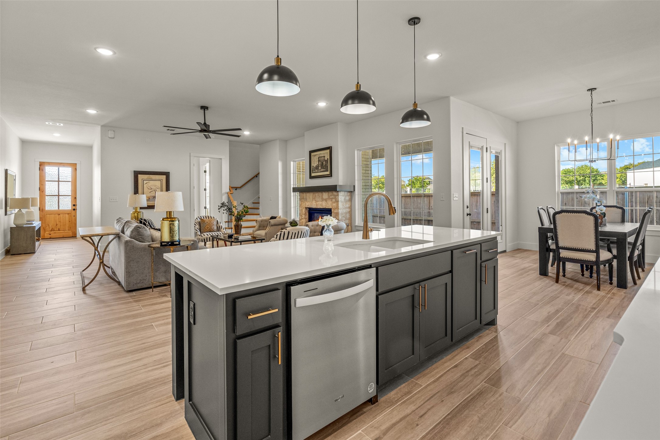 This beautiful townhome offers the perfect blend of luxury and convenience in the heart of downtown Aledo. Featuring a charming stone exterior, this home boasts 4 spacious bedrooms, 4 full bathrooms, and a 2-car garage. The first floor includes a private primary suite with dual sinks, a soaking tub, a separate shower, and a custom walk-in closet, along with an additional guest bedroom that can easily serve as an office. The open kitchen, living, and dining area is designed for modern living and entertaining. The kitchen is equipped with stainless steel appliances, a gas cooktop, microwave, refrigerator, walk-in pantry, designer backsplash, and stylish lighting. A stone, gas fireplace adds warmth and ambiance to the living room. Upstairs, you'll find a spacious game room, perfect for relaxation or entertainment, as well as an adjacent area ideal for a home office or fitness space. Two additional bedrooms, two full bathrooms, and two versatile flex spaces provide all the storage and functionality you could need. Located within walking distance to toprated schools, restaurants, shopping, and parks, 170 Hulen Circle offers a truly convenient and luxurious lifestyle.