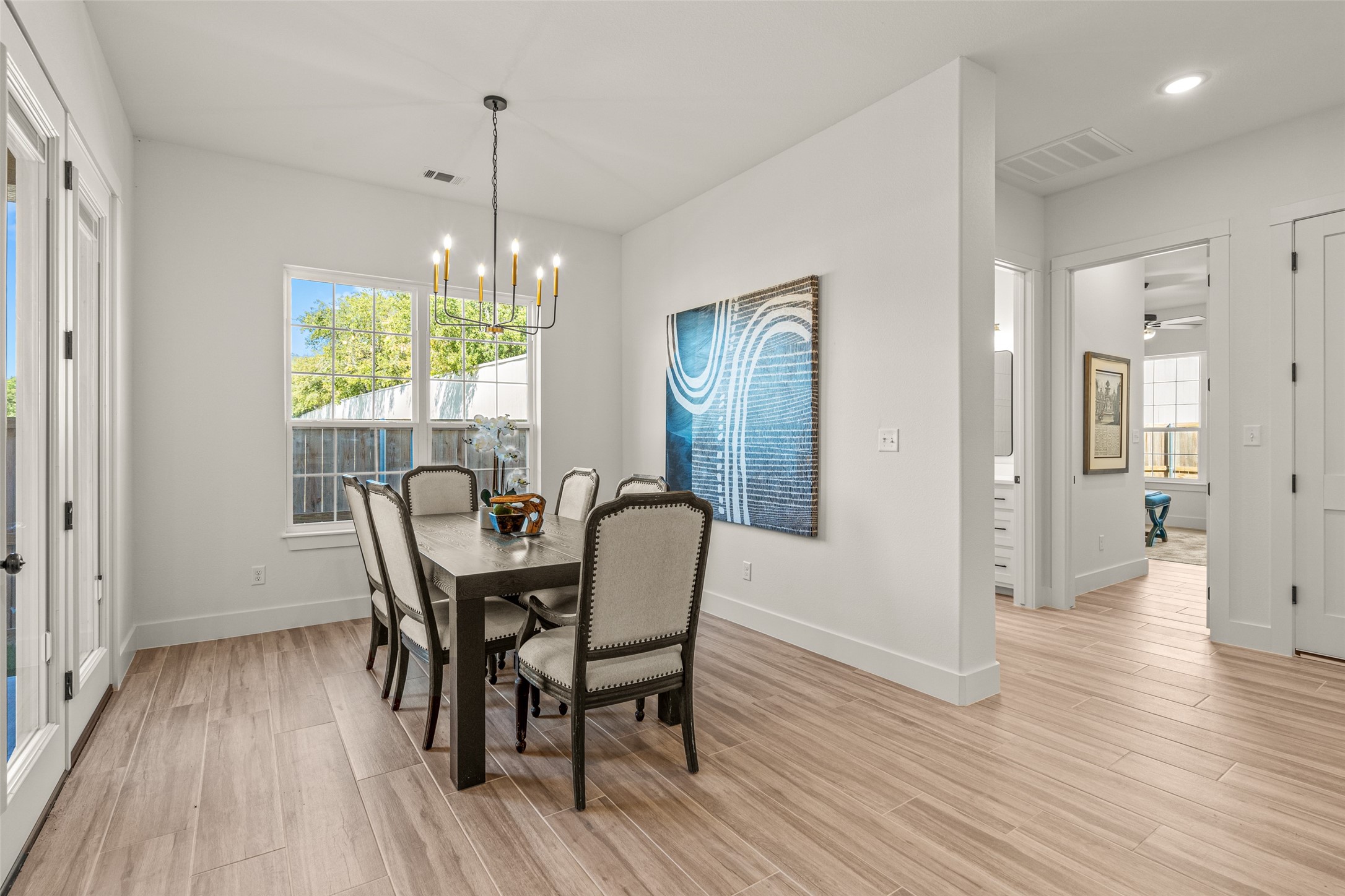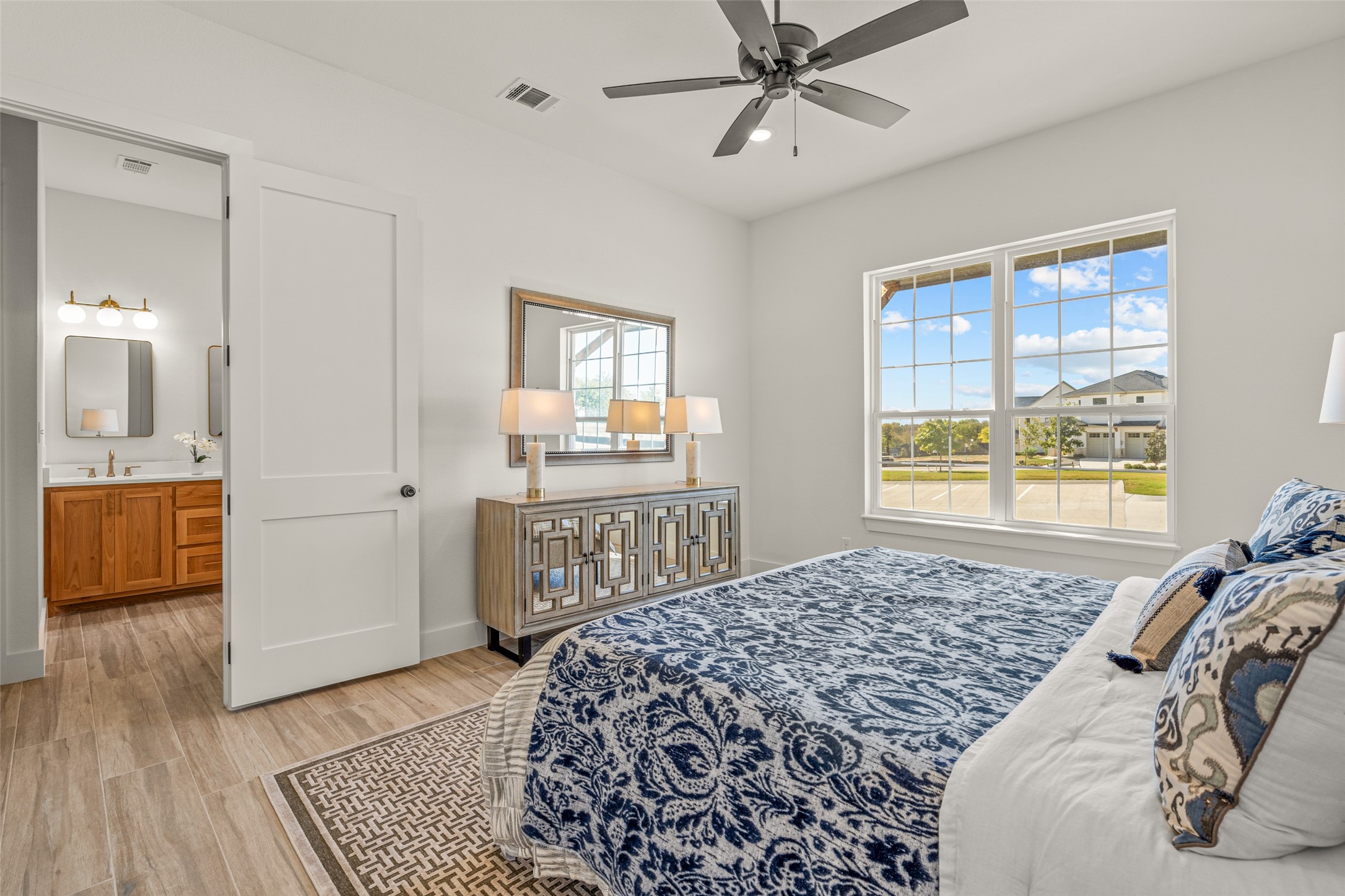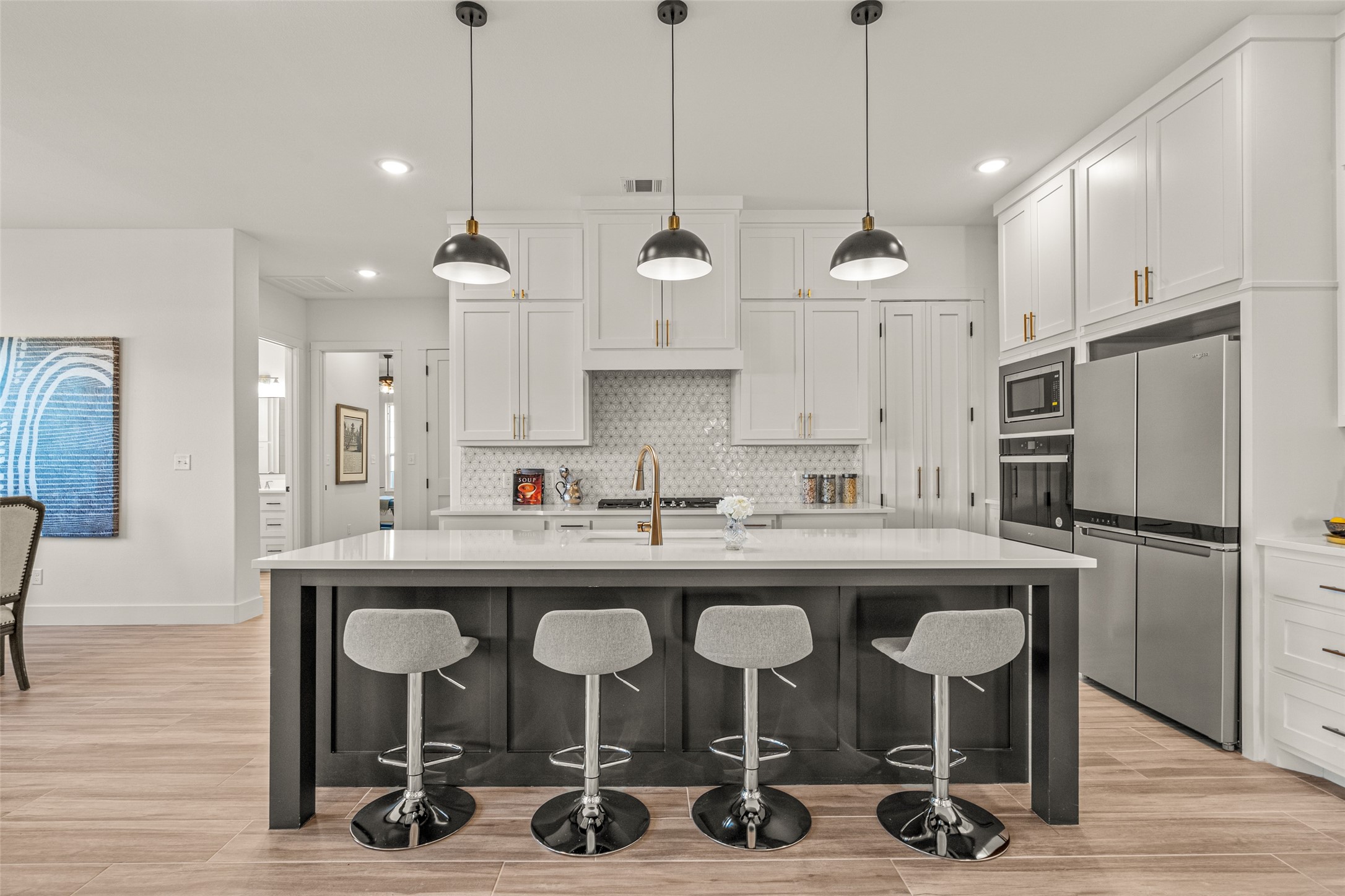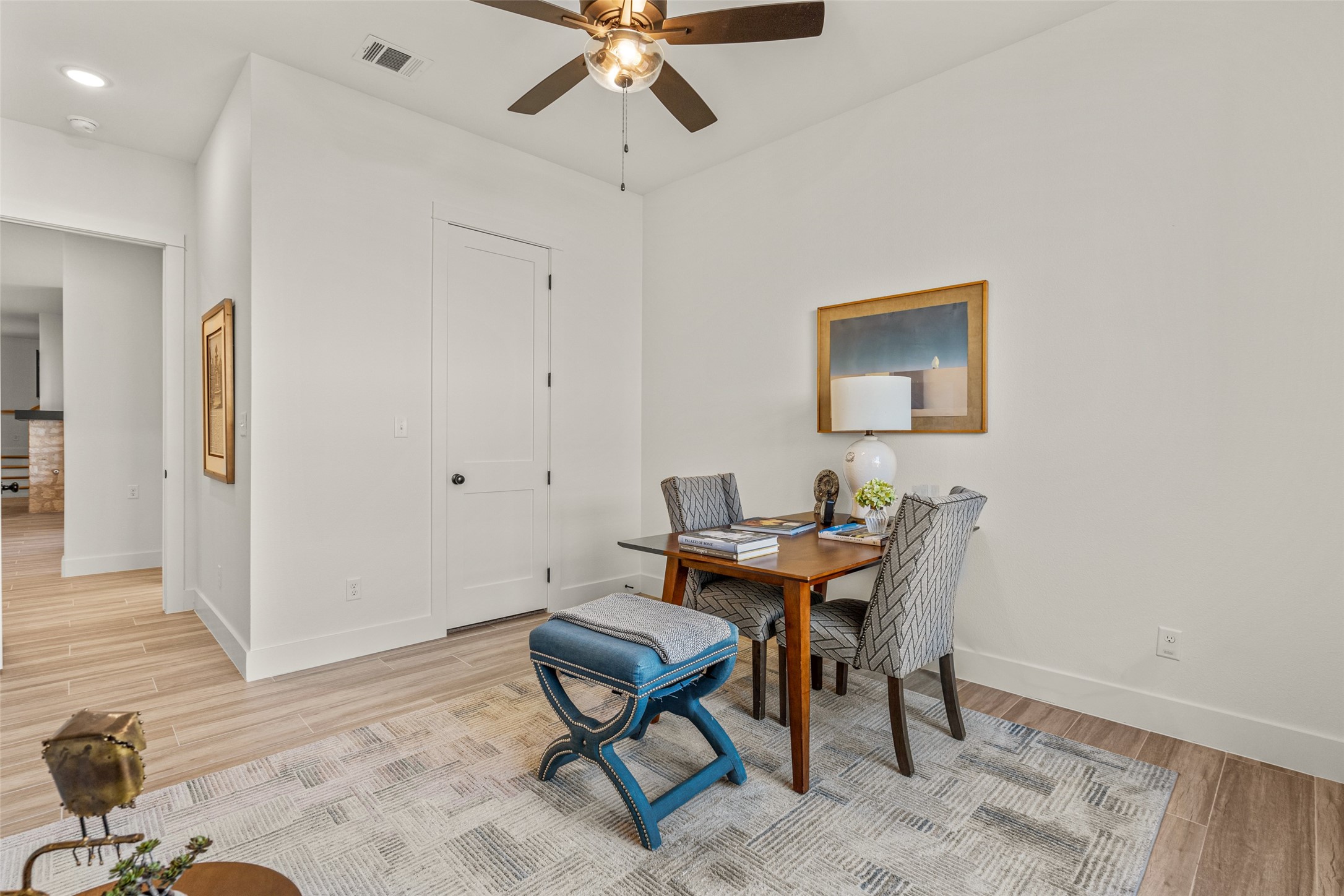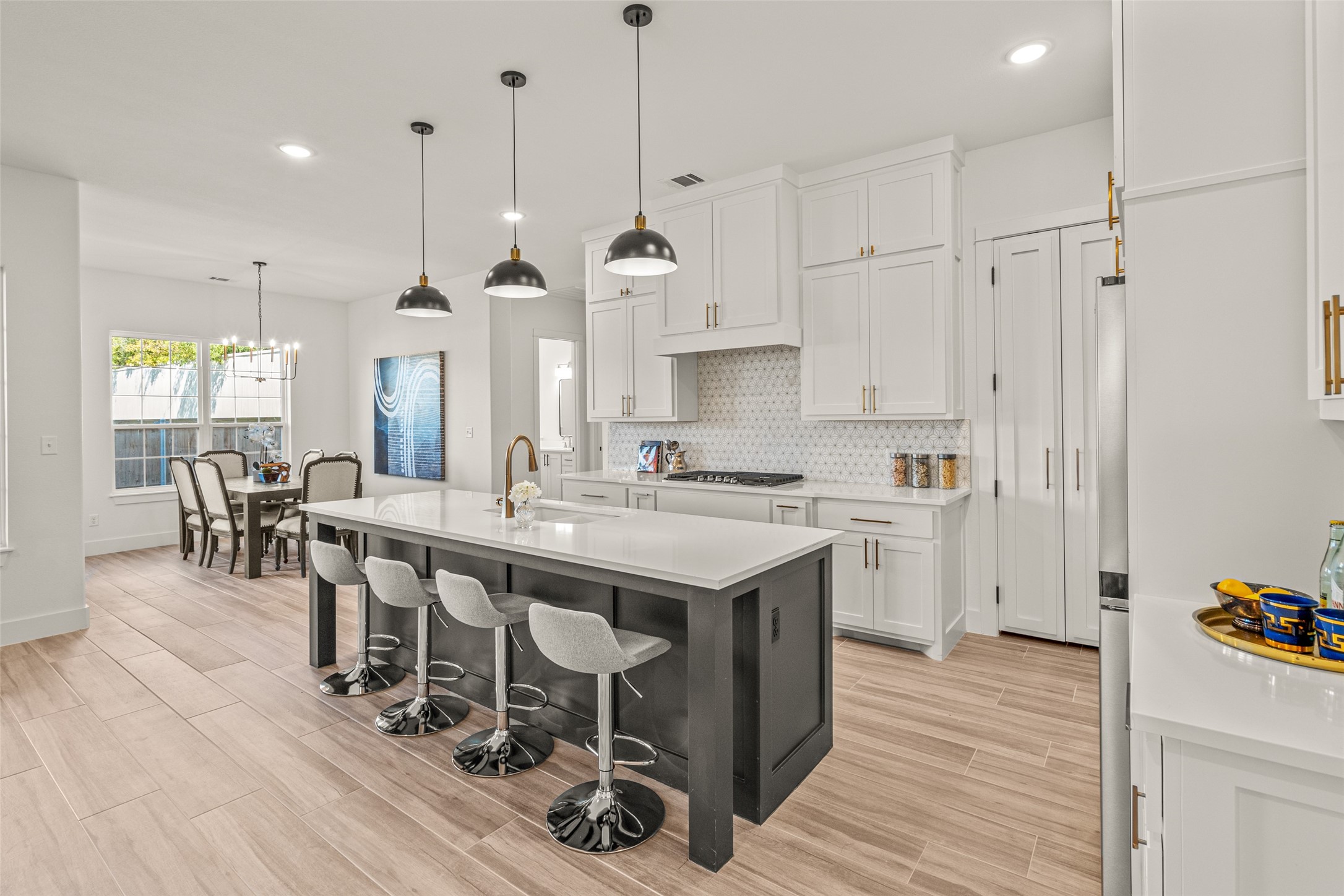 This beautiful townhome offers the perfect blend of luxury and convenience in the heart of downtown Aledo. Featuring a charming stone exterior, this home boasts 4 spacious bedrooms, 4 full bathrooms, and a 2-car garage. The first floor includes a private primary suite with dual sinks, a soaking tub, a separate shower, and a custom walk-in closet, along with an additional guest bedroom that can easily serve as an office. The open kitchen, living, and dining area is designed for modern living and entertaining. The kitchen is equipped with stainless steel appliances, a gas cooktop, microwave, refrigerator, walk-in pantry, designer backsplash, and stylish lighting. A stone, gas fireplace adds warmth and ambiance to the living room. Upstairs, you'll find a spacious game room, perfect for relaxation or entertainment, as well as an adjacent area ideal for a home office or fitness space. Two additional bedrooms, two full bathrooms, and two versatile flex spaces provide all the storage and functionality you could need. Located within walking distance to toprated schools, restaurants, shopping, and parks, 170 Hulen Circle offers a truly convenient and luxurious lifestyle.