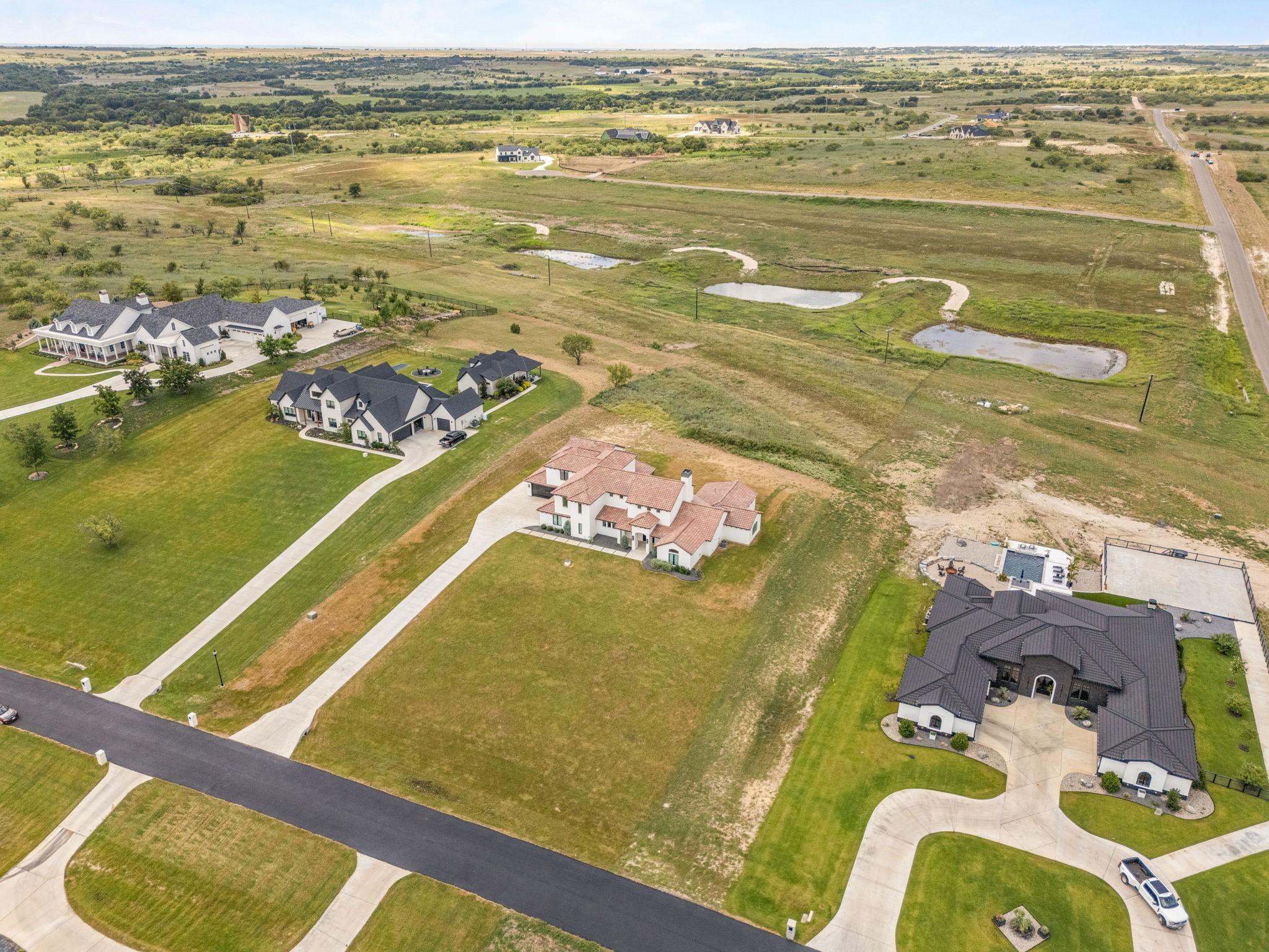 Set on an elevated 3.35-acre lot with panoramic views, this stunning 6,203 SF home is located in the prestigious gated La Madera community and within sought-after Aledo ISD. Offering 4 bedrooms, 6 full baths, and 1 half bath, the residence blends clean architectural lines with warm, livable design.The open-concept floor plan showcases a dramatic living, dining, and kitchen area with soaring ceilings, statement lighting, and walls of glass that frame expansive views. The chef's kitchen features custom cabinetry, a center island, and seamless flow into the living spaces--ideal for entertaining. The first floor includes a spacious game or family room, guest suite, and the private primary suite with spa-style bath. Upstairs, a sitting area leads to two ensuite bedrooms and a media or game room. An attached guest suite on the main level offers privacy while remaining connected, complete with open living space, built-in cabinetry, and a full bath--perfect for extended stays or multi-generational living. Outside city limits, this property offers both privacy and lifestyle flexibility in one of the area's most desirable gated communities.