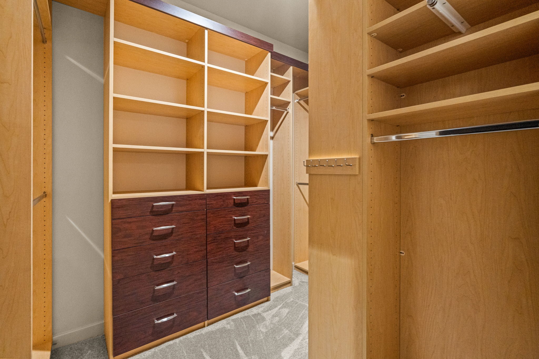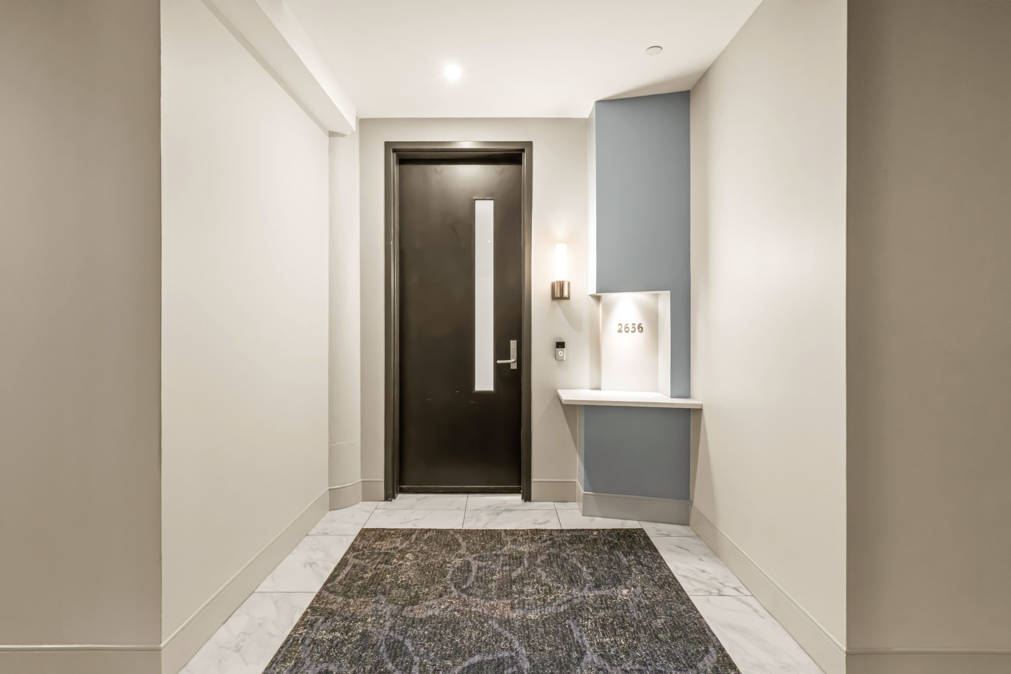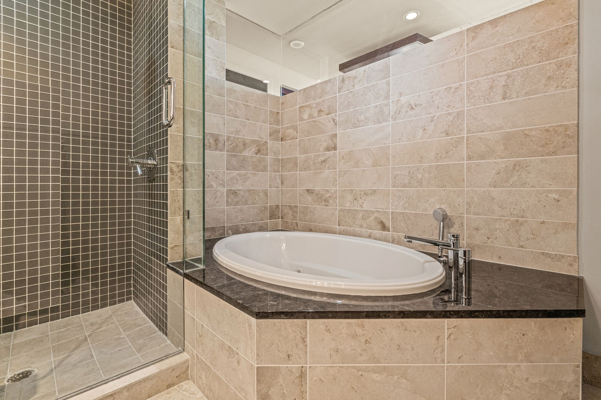 The primary suite serves as a peaceful retreat, complete with a custom-designed closet and a spa-inspired bath featuring dual sinks, a soaking tub, and a separate walk-in shower. A well-appointed secondary bedroom and full bath provide comfortable space for guests, a home office, or whatever fits your lifestyle best. Two deeded parking spaces offer added convenience, and the secure building provides true lock-and-leave ease.
