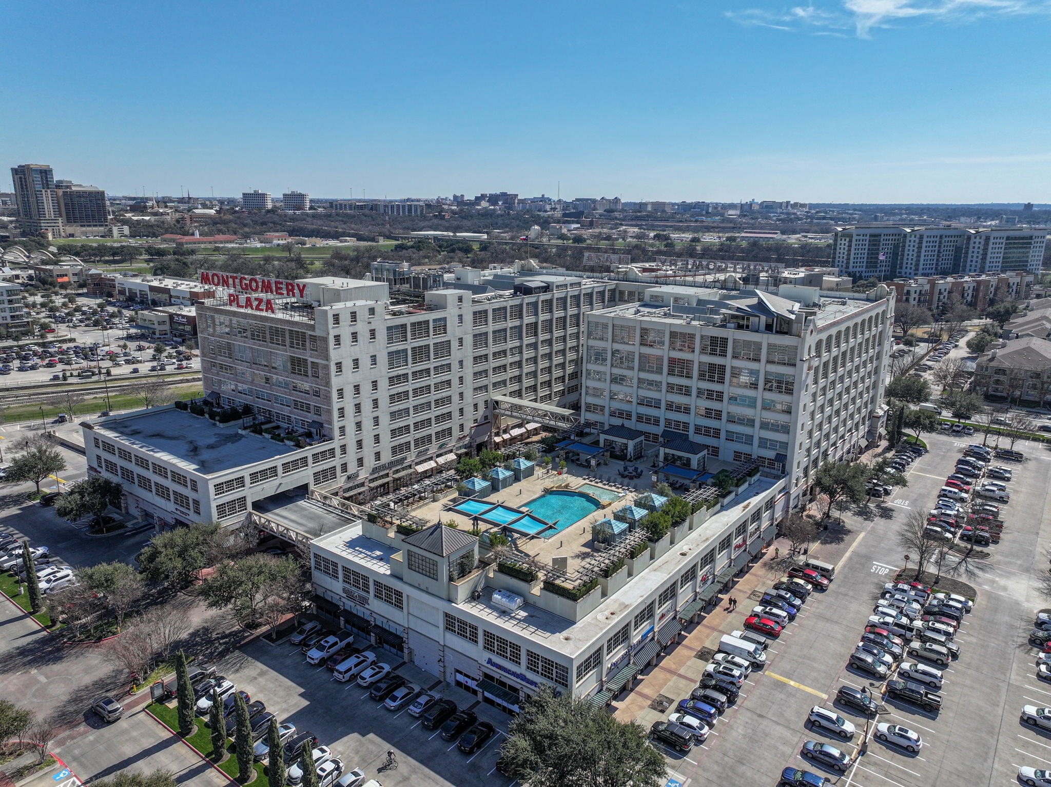 Life at Montgomery Plaza extends far beyond your front door. Residents enjoy resort-style amenities including a rooftop pool and spa with skyline views, grilling stations, outdoor lounge areas, a fitness center, clubhouse, dog run, secure garage parking, and full-time concierge service.