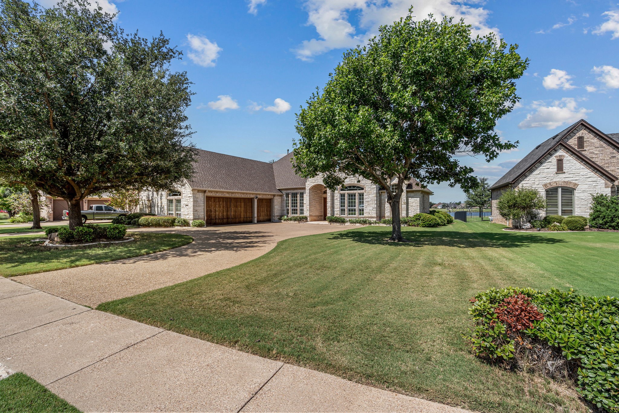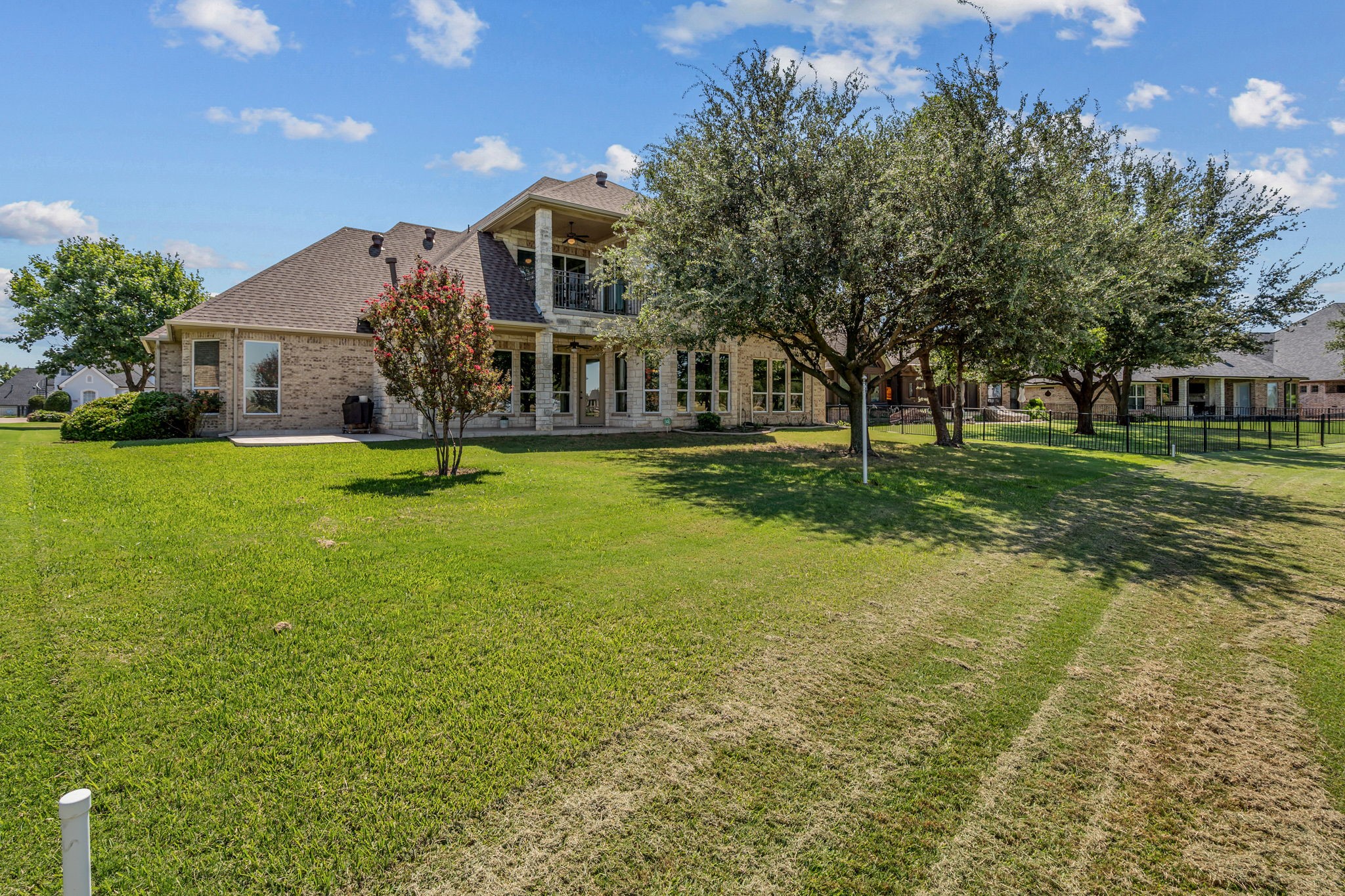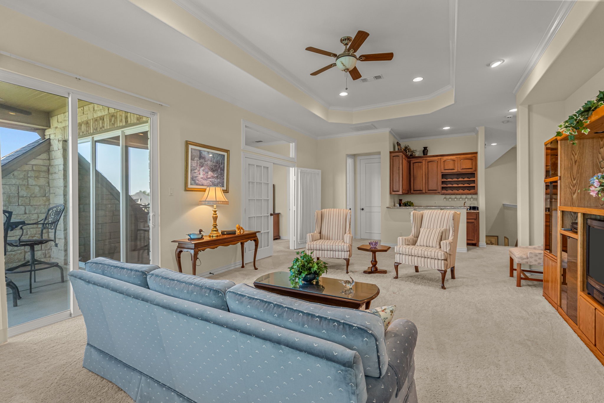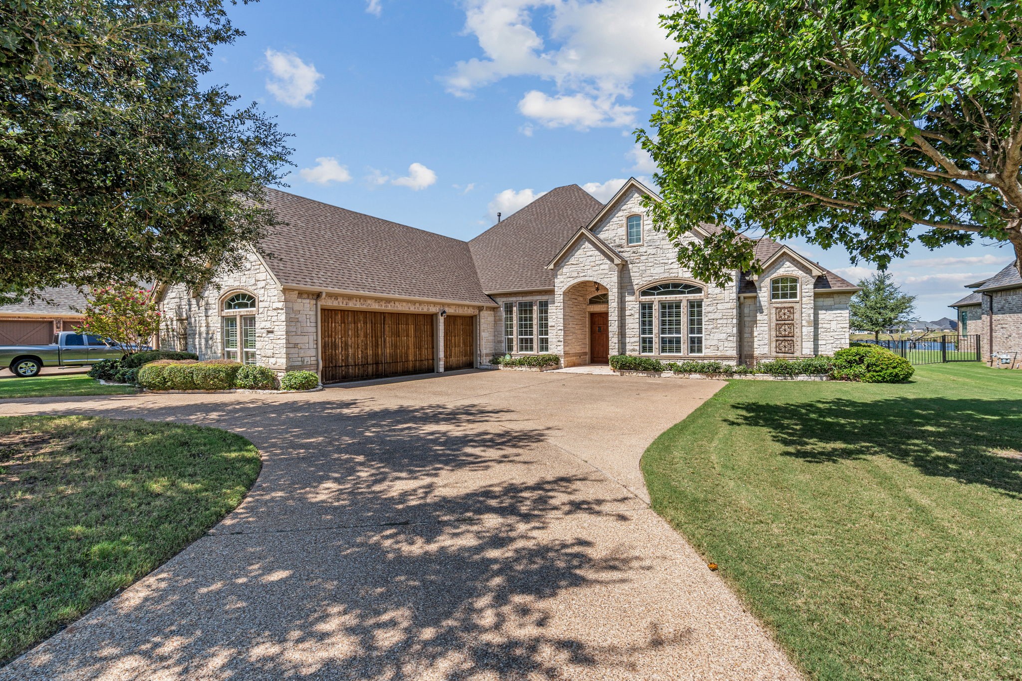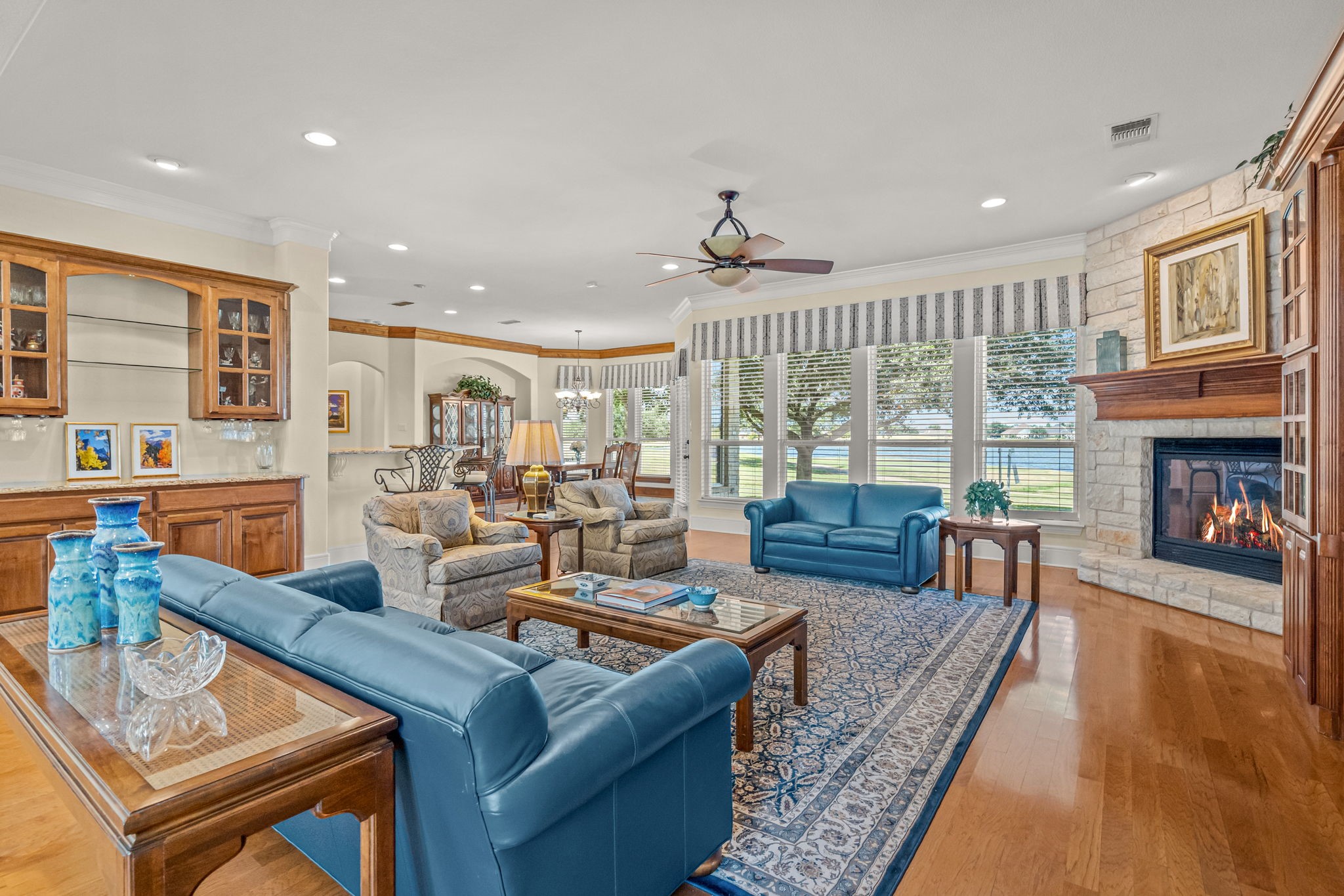 Welcome to 2703 Waters Edge in Harbor Lakes - a warm and inviting retreat overlooking the serene waters of Lake Granbury and the 14th tee box of Harbor Lakes Golf Club, with sweeping lake and fairway views from most rooms in the home. Inside, the thoughtful floor plan features both formal and casual dining areas, along with a spacious open kitchen with granite countertops, a center island, and breakfast bar. The kitchen flows effortlessly into the dining and living spaces, where a cozy fireplace and bar area create the perfect setting for entertaining. A private study and two main-level primary suites provide exceptional flexibility and privacy. Upstairs, a large living-game room with wet bar, balcony access, and ensuite bedroom is ideal for guests or family. A generous bonus room adds even more versatility--perfect for a playroom, craft studio, workout area, or a combination of all three. Outdoor and garage features include a circular drive, a 3-car garage with a dedicated golf cart bay that opens directly to the back for instant course access, plus a wall of built-in shelving and cabinets. Additional highlights include two cedar closets, a brand-new roof (August 2025), and three new AC units (2020). This Harbor Lakes gem blends comfort, convenience, and an unmatched golf course lifestyle--complete with amazing golf and water views ! BONUS - Community boat launch for Harbor Lake residents!