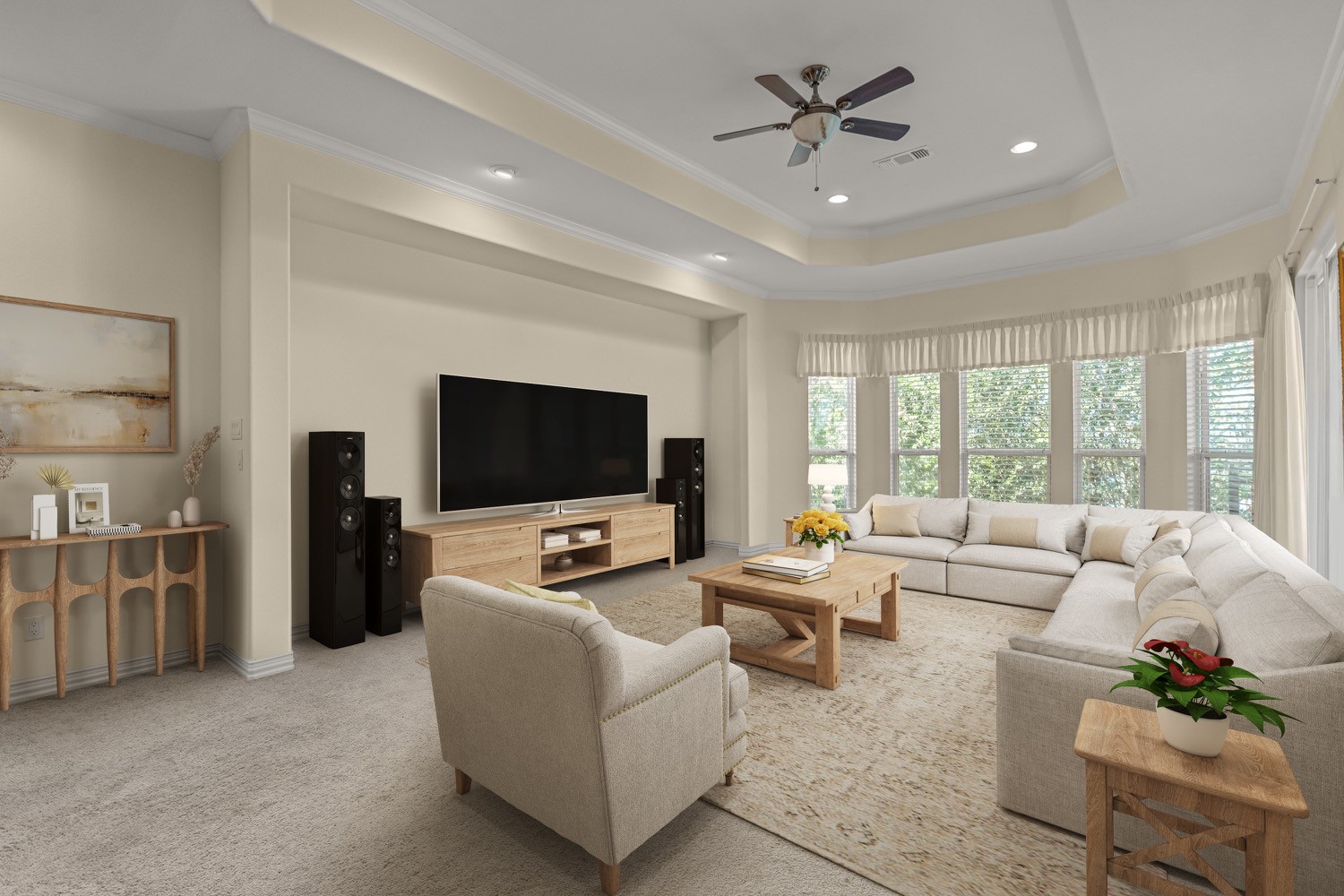 Flooring: Carpet, Ceramic Tile, Wood