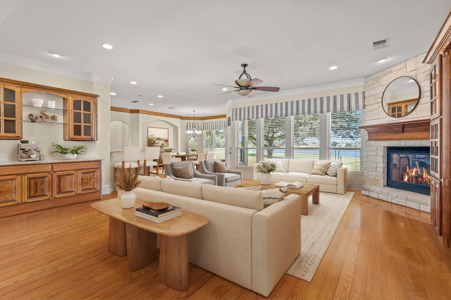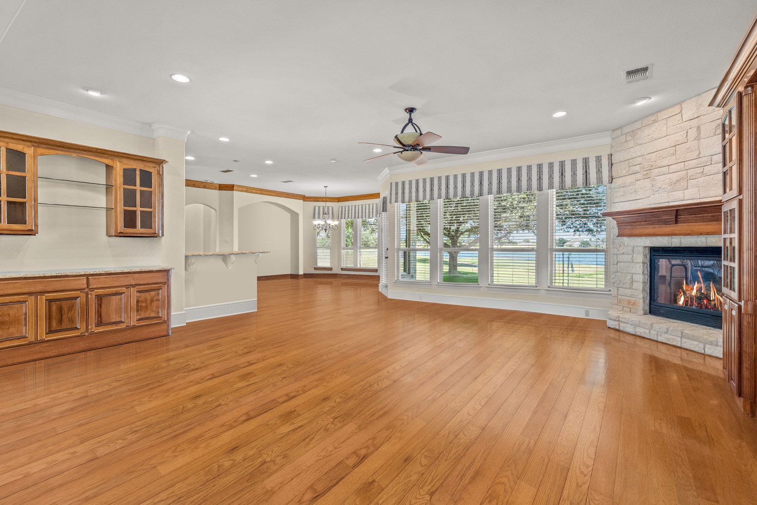 Other Interior Features: Wet Bar, Built-in Features, Cedar Closet(s), Chandelier, Dry Bar, Decorative/Designer Lighting Fixtures, Double Vanity, Eat-in Kitchen, Granite Counters, High Speed Internet, In-Law Floorplan, Kitchen Island, Multiple Master Suites, Open Floorplan, Pantry, Walk-In Closet(s), Wired for Sound