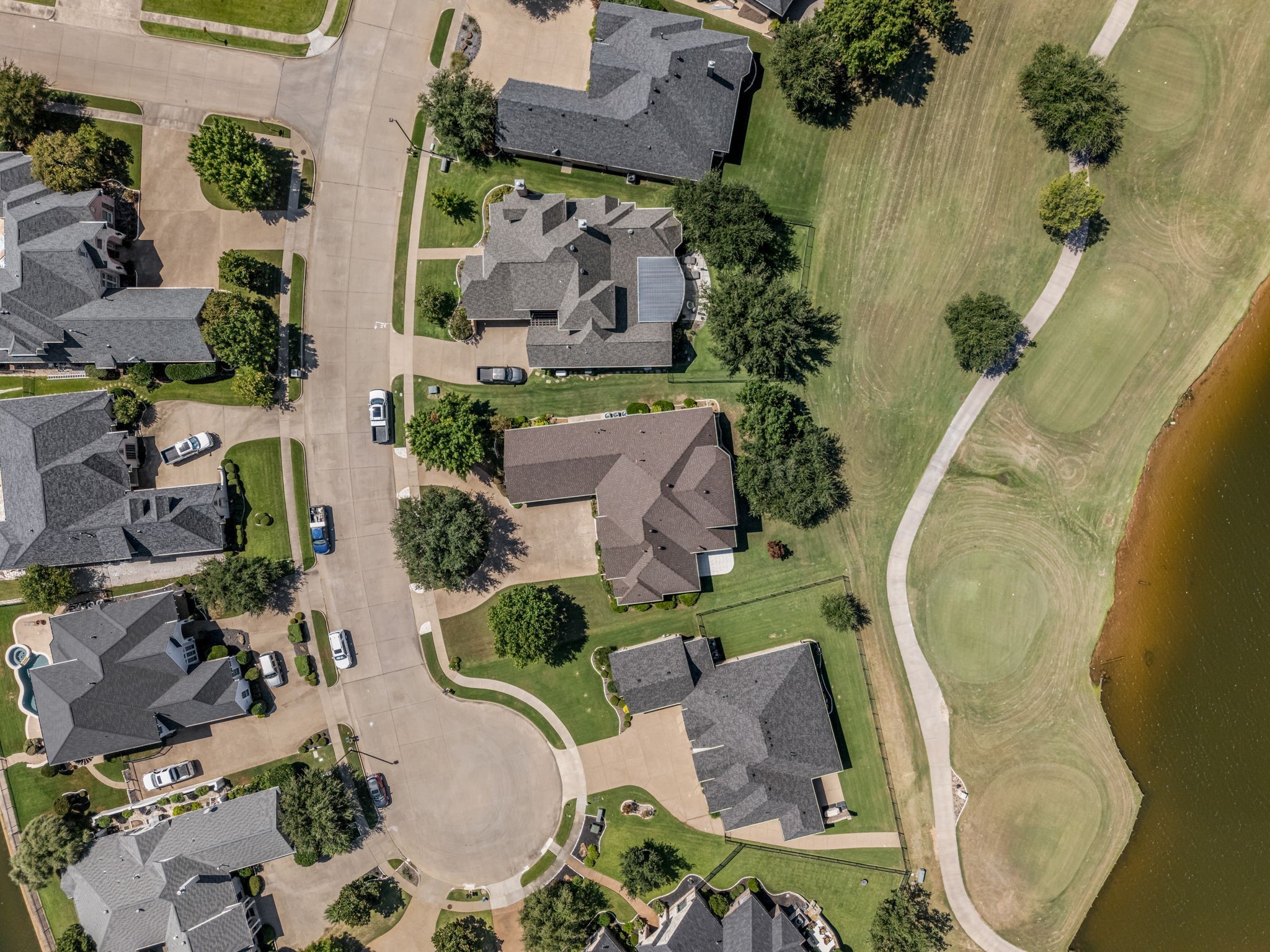 Lot Features: Back Yard, Cul-De-Sac, Interior Lot, Lawn, Landscaped, On Golf Course, Pond on Lot, Subdivision, Sprinkler System, Few Trees, Waterfront