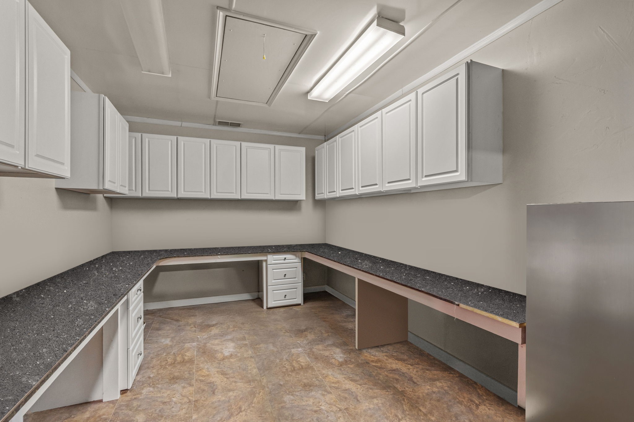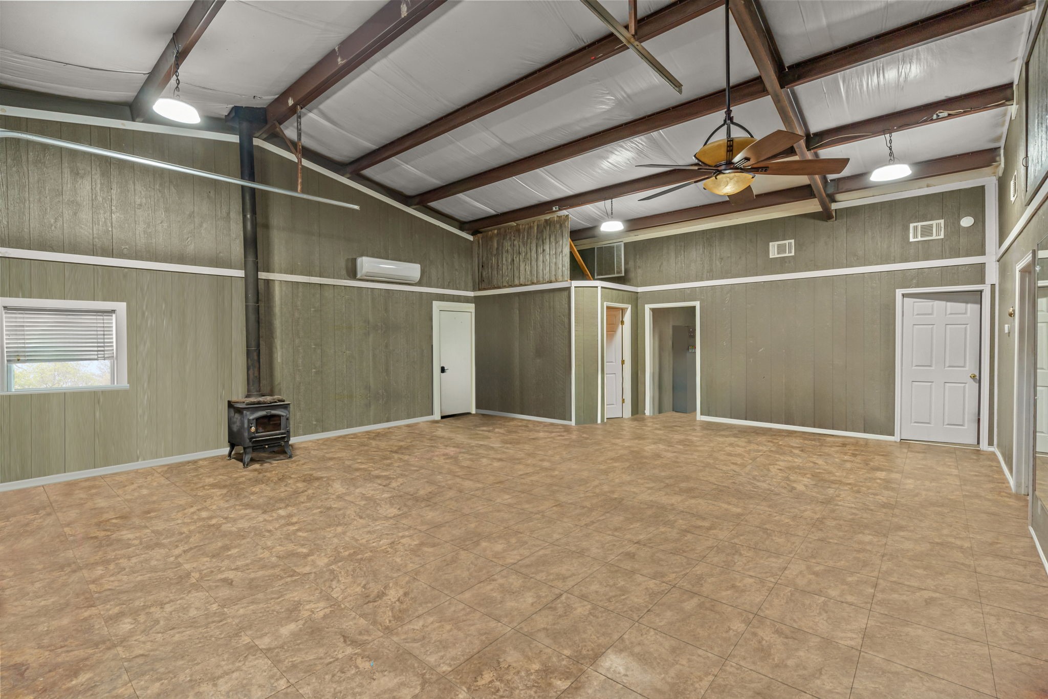 The first home is a barndominium attached to a well-designed three-stall barn with paddocks, a feed room, tack room, and wash area. Inside, you'll find two large bedrooms, a spacious bathroom, an office that could serve as a third bedroom, a full laundry room, and an open kitchen and living area. A garage-style door opens to the outdoors, creating a seamless indoor-outdoor space. Across from the barndominium, you will find covered carport parking, a shop, and ample storage. The property is fully fenced and cross-fenced with a round pen, open pasture, and a large above-ground pool perfect for summer days.