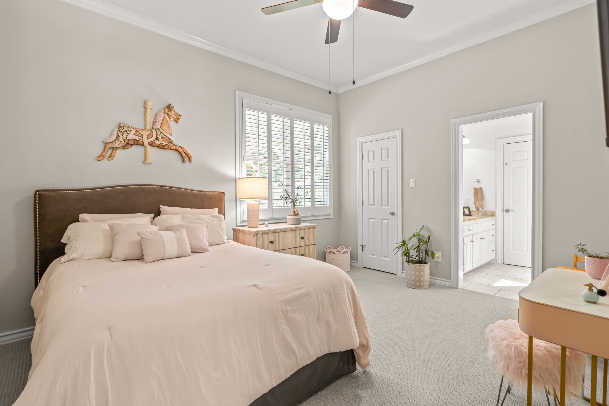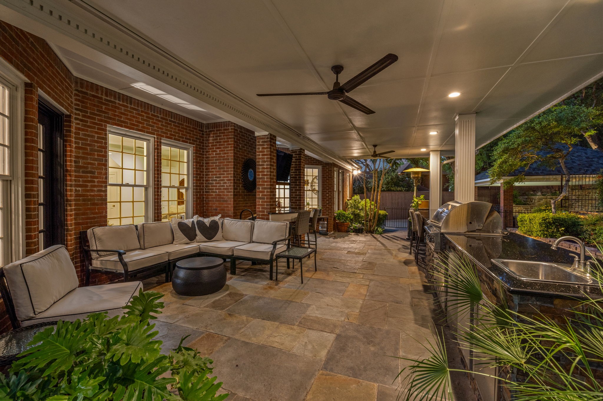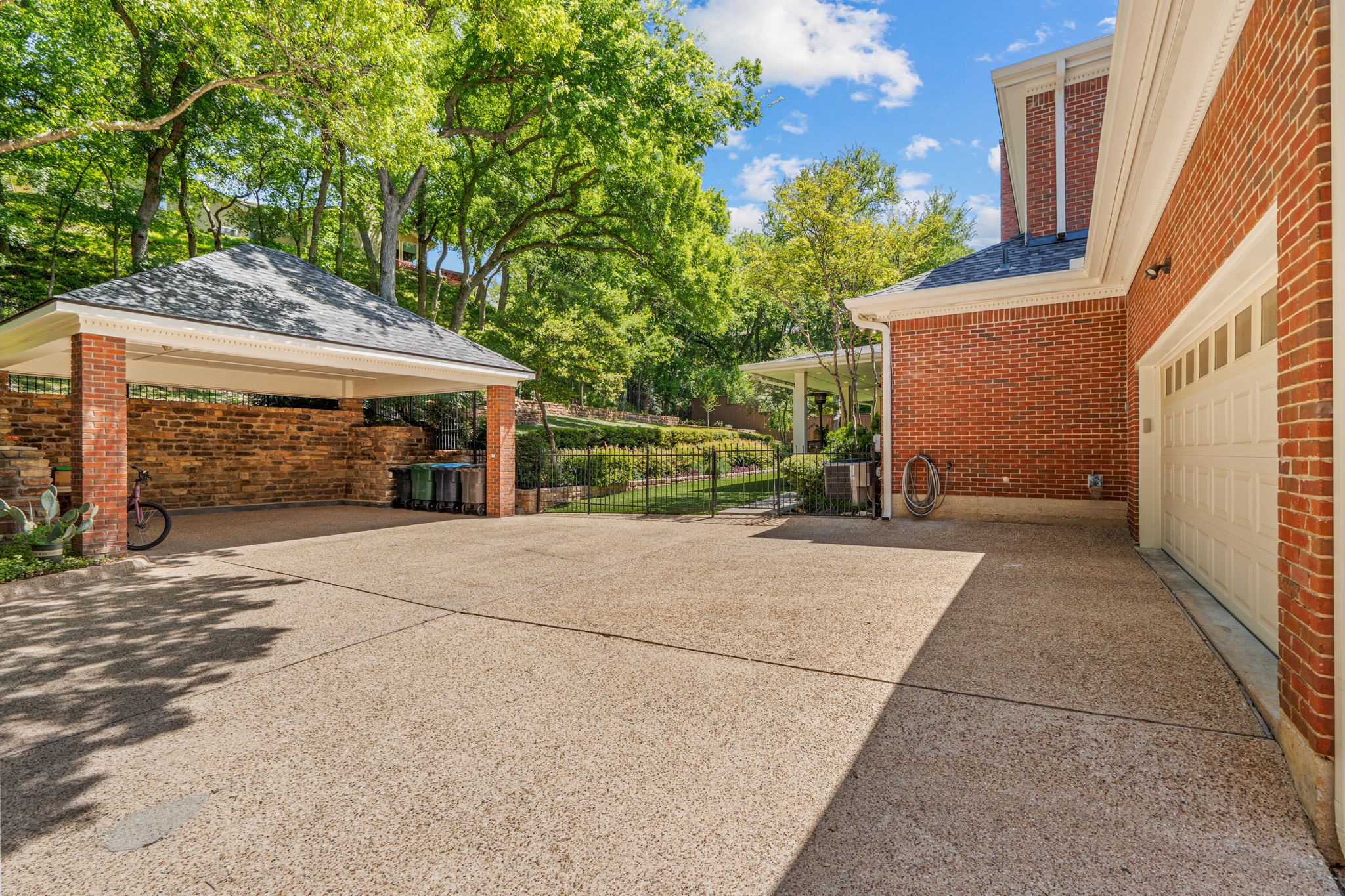 Nestled in the prestigious Overton Woods neighborhood, this stately Georgian-style residence offers timeless architecture paired with modern luxury. Updated in 2023-2024, the home is surrounded by lush landscaping, mature trees, and a circular drive that sets an impressive tone from the moment you arrive. A grand two-story foyer gracefully separates the formal living and dining areas. The family room opens to the kitchen and breakfast nook, creating a comfortable and seamless flow between the spaces, with a conveniently located half bath for guests. The kitchen features a breakfast bar, central island, walk-in pantry, and a coffee and wine bar complete with a sink and wine refrigerator. The spacious primary suite is located on the main level with views of the backyard and direct patio access. The light-filled en-suite bath boasts dual sinks, a separate soaking tub, walk-in shower, and dual closets. Upstairs, four bedrooms are thoughtfully arranged with two Jack-and-Jill bathrooms, while the third floor offers a versatile bonus room ideal as a game room, office, or additional living space. Step outside to a serene backyard retreat, where a covered outdoor living and grilling area--featuring two bar tops--overlooks a beautifully manicured yard with lush turf and a private putting green, ideal for both relaxation and entertaining. Additional highlights include a generous utility room, half bathroom, mosquito misting system, new class 4 impact resistant roof and gutters in 2023, a two-car garage, and a separate covered parking area accommodating two additional vehicles. Zoned to highly acclaimed Overton Park Elementary and minutes from premier shopping, dining, entertainment, and major thoroughfares, this exceptional home offers both elegance and everyday convenience.