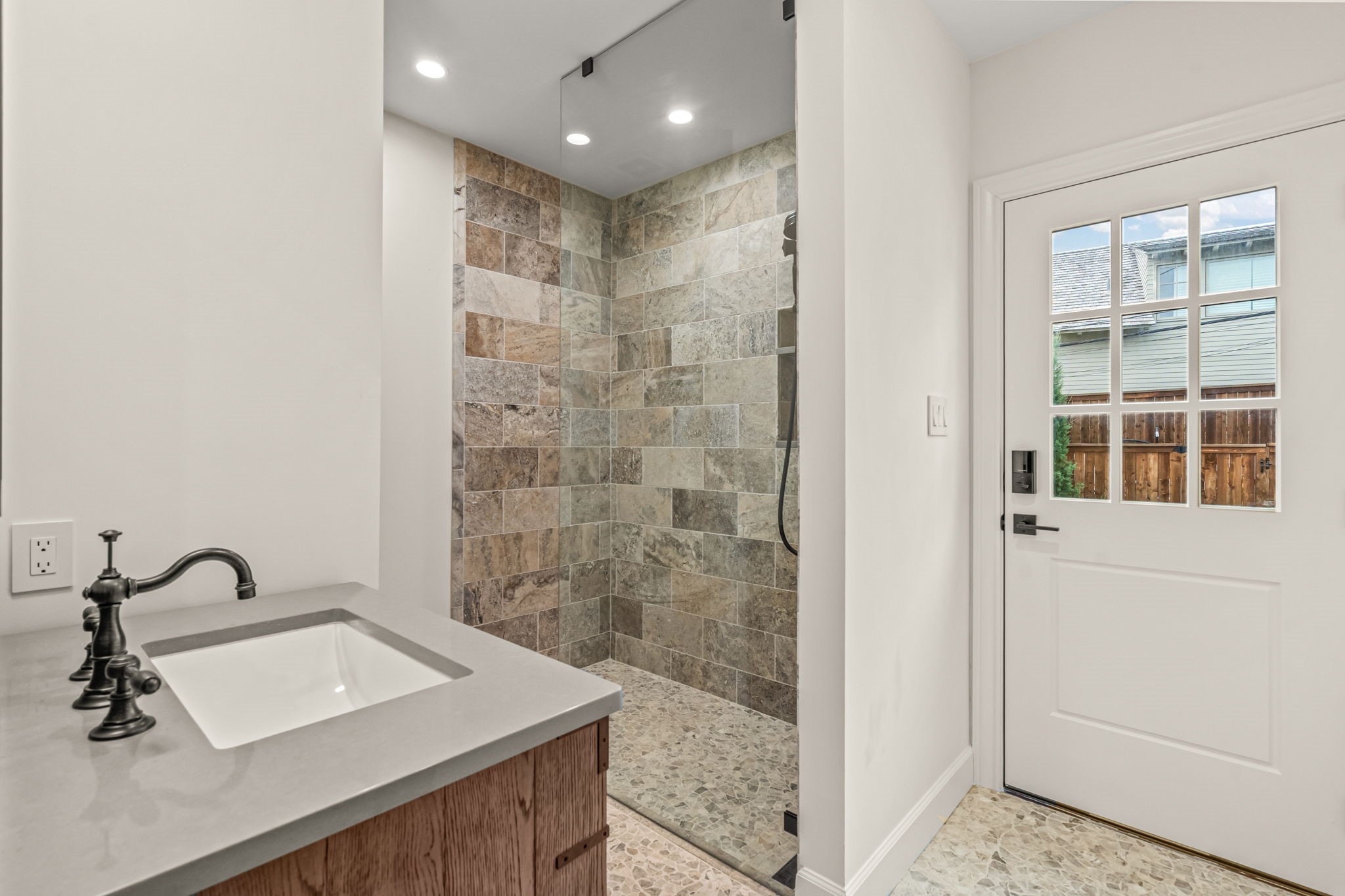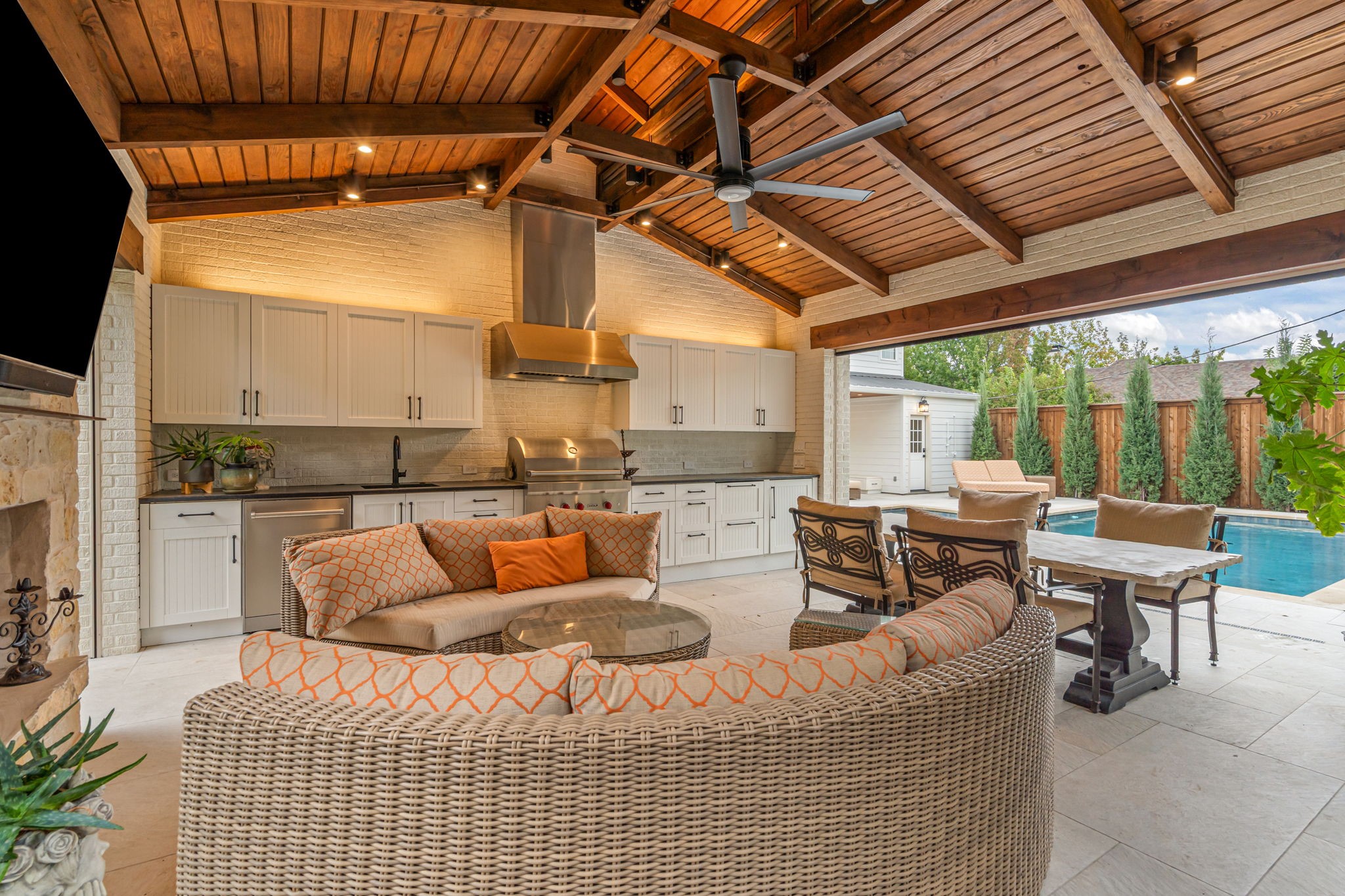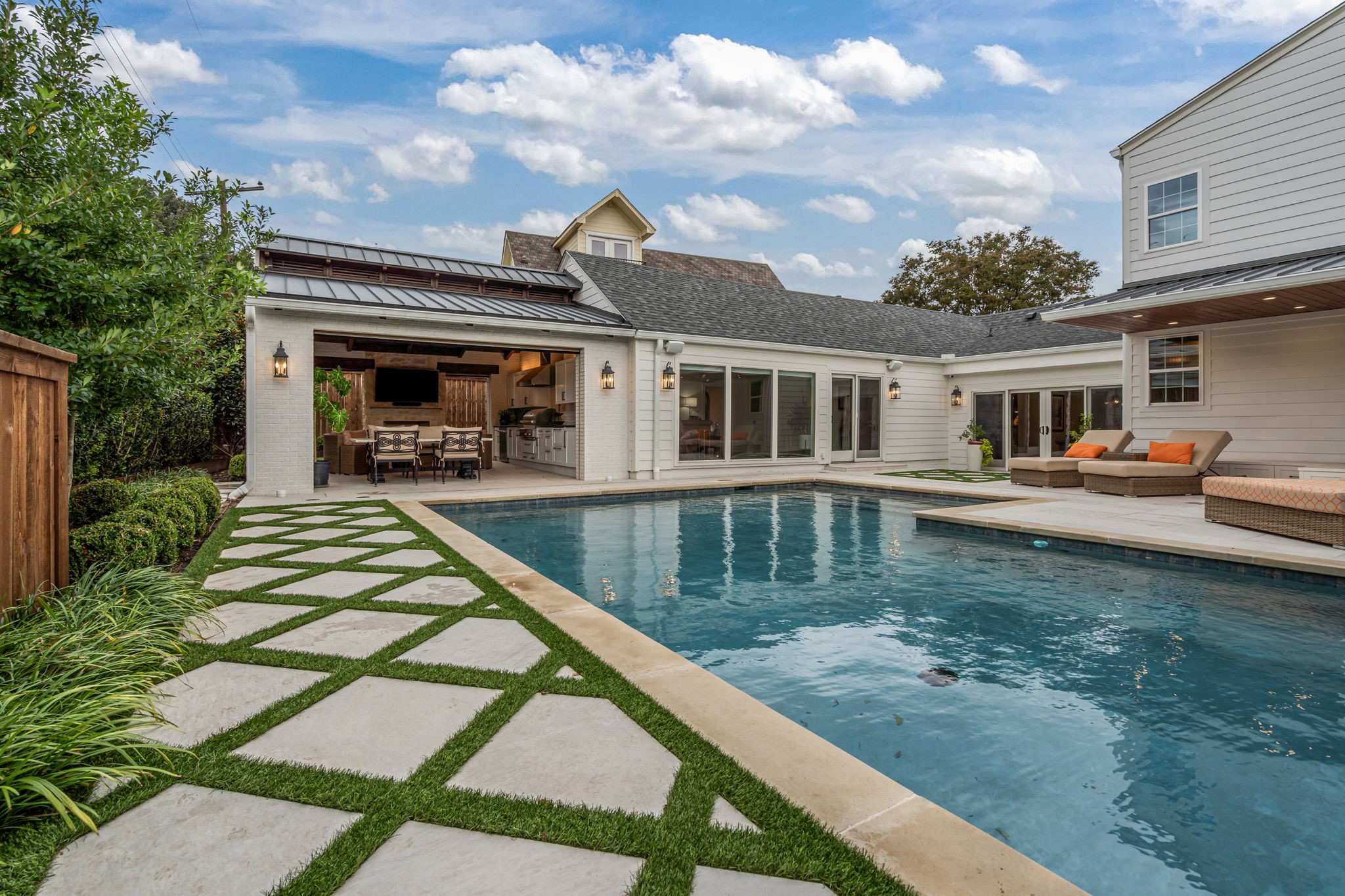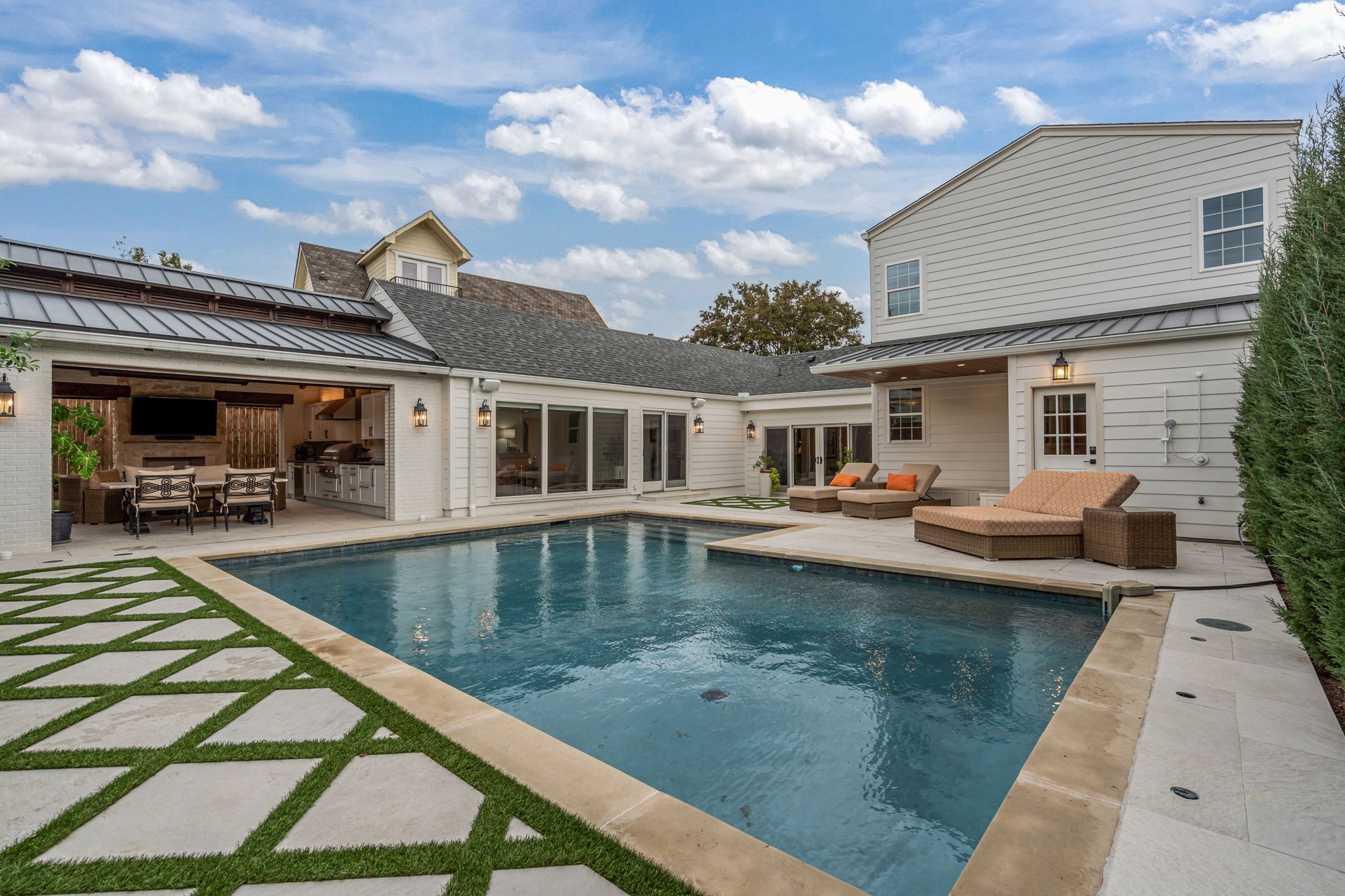 Perfectly situated in the heart of Fort Worth's premier neighborhood, Monticello, this home has been completely reimagined & rebuilt to perfection. Now offering 5 bedrooms, 5 baths, multiple living areas, dual utility rooms, wet bars, & an elegant 1st floor study (opt. 5th bedrm), all complemented by an attached 425 sqft. garage--every inch of this home was designed with luxury & livability in mind. Step through into a bright, inviting formal living space that flows seamlessly into a chef's dream kitchen. Outfitted with top-of-the-line appliances, including a La Cornue range, second oven, & built-in cabinets, this culinary space features a stunning island with seating, an adjacent dining area, & a full butler's pantry with additional storage & prep space. Continuing through the first level of the home, you'll find three bedrooms with three full bathrooms & a spacious second living area that anchors the main level--perfect for daily living, entertaining guests, or relaxing with family. The grand primary suite is a showpiece--floor-to-ceiling windows, a cozy fireplace, & a boutique-style walk-in closet she'll love, plus two additional closets for him. The spa-like primary bath defines luxury with heated tile floors, dual vanities, a walk-in shower, freestanding soaking tub, & a private utility room with washer, dryer, built-ins, & a third sink for added convenience. Upstairs, discover two additional bedrooms & a spacious shared bath with dual sinks, perfect for family or guests. Step outside to your private resort-style retreat--a designer pool with deck jets, outdoor shower, & a fully equipped outdoor kitchen featuring Wolf appliances, built-in cabinets, dishwasher, refrigerator & freezer drawers, & a stunning stone outdoor fireplace. Motorized mesh screens allow you to enclose the patio & a Generac whole-home generator ensures uninterrupted comfort & convenience. No detail was overlooked & no expense spared in crafting this one-of-a-kind Monticello masterpiece.