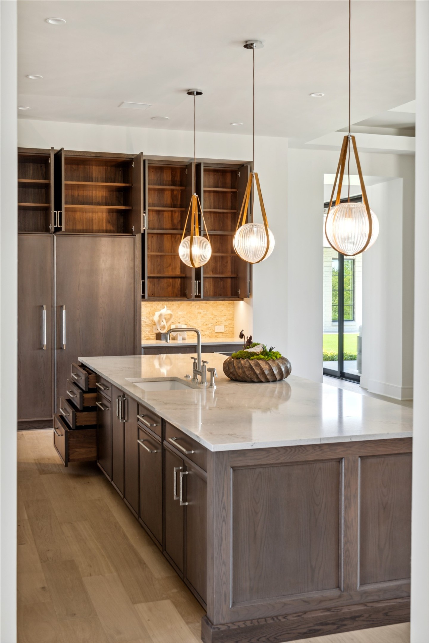 Designed for effortless living and entertaining, the open-concept living room flows into the dining area and chef's kitchen--complete with a central island, a spacious back kitchen, and a separate walk-in pantry. The great room features a stylish wet bar, while a dedicated study offers a quiet space to work or unwind. A separate lounge with its own wet bar opens directly to the back patio, creating seamless indoor-outdoor living.