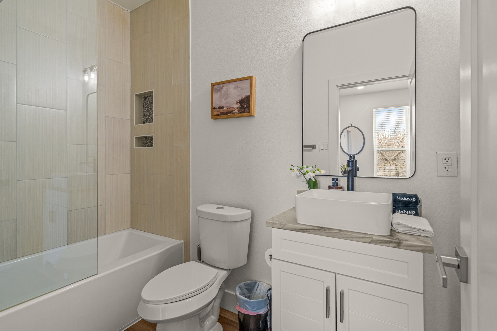 The home features 3 bedrooms and 3.1 bathrooms thoughtfully designed across three levels. The ground floor offers a private guest suite with a full bathroom, abundant storage, and a secondary kitchen--ideal for guests, extended stays, or flexible living arrangements.