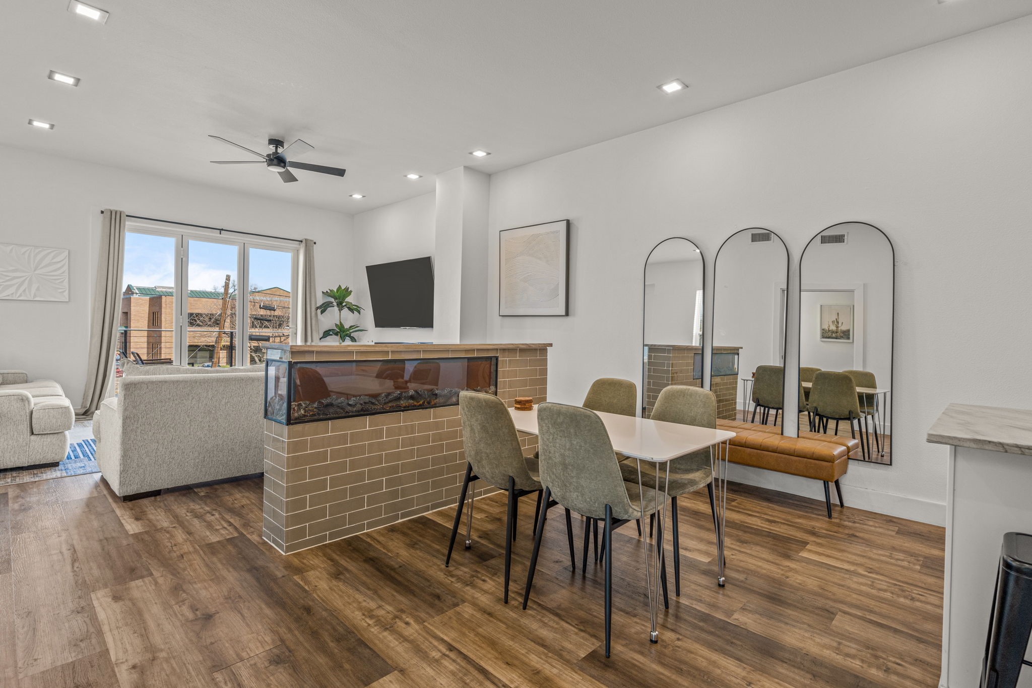 Fireplace: Den, Double Sided, Electric, Living Room