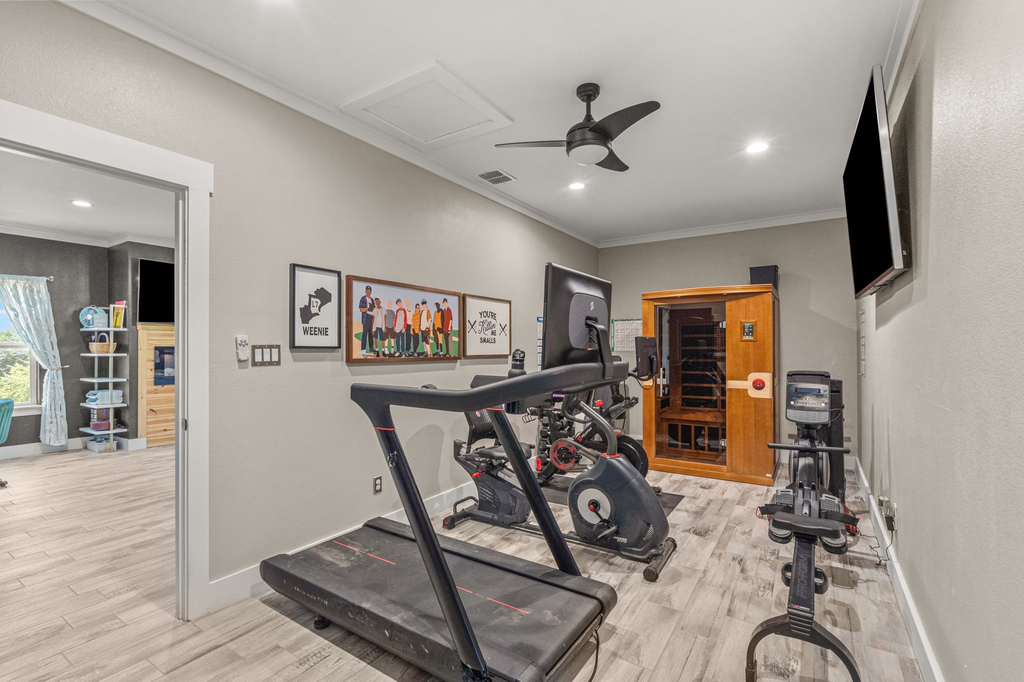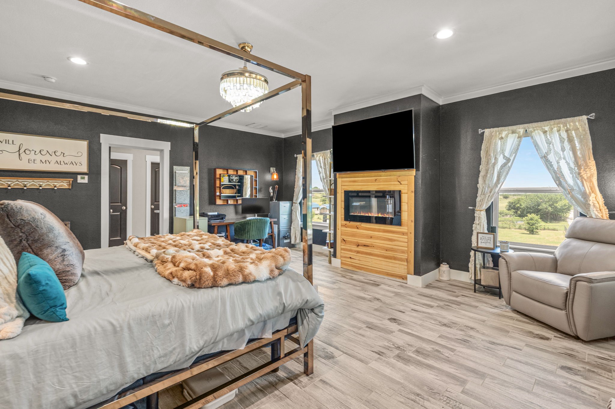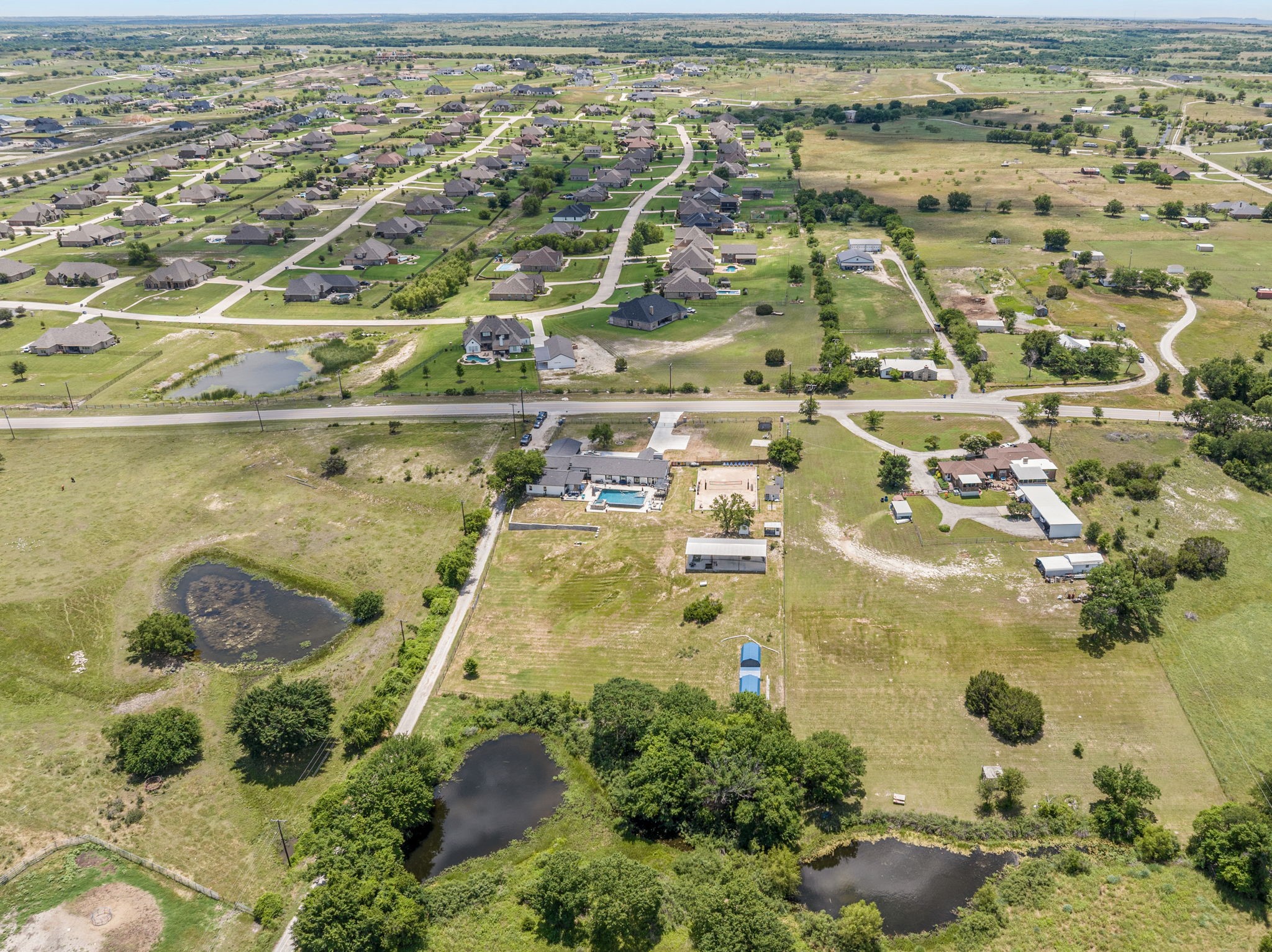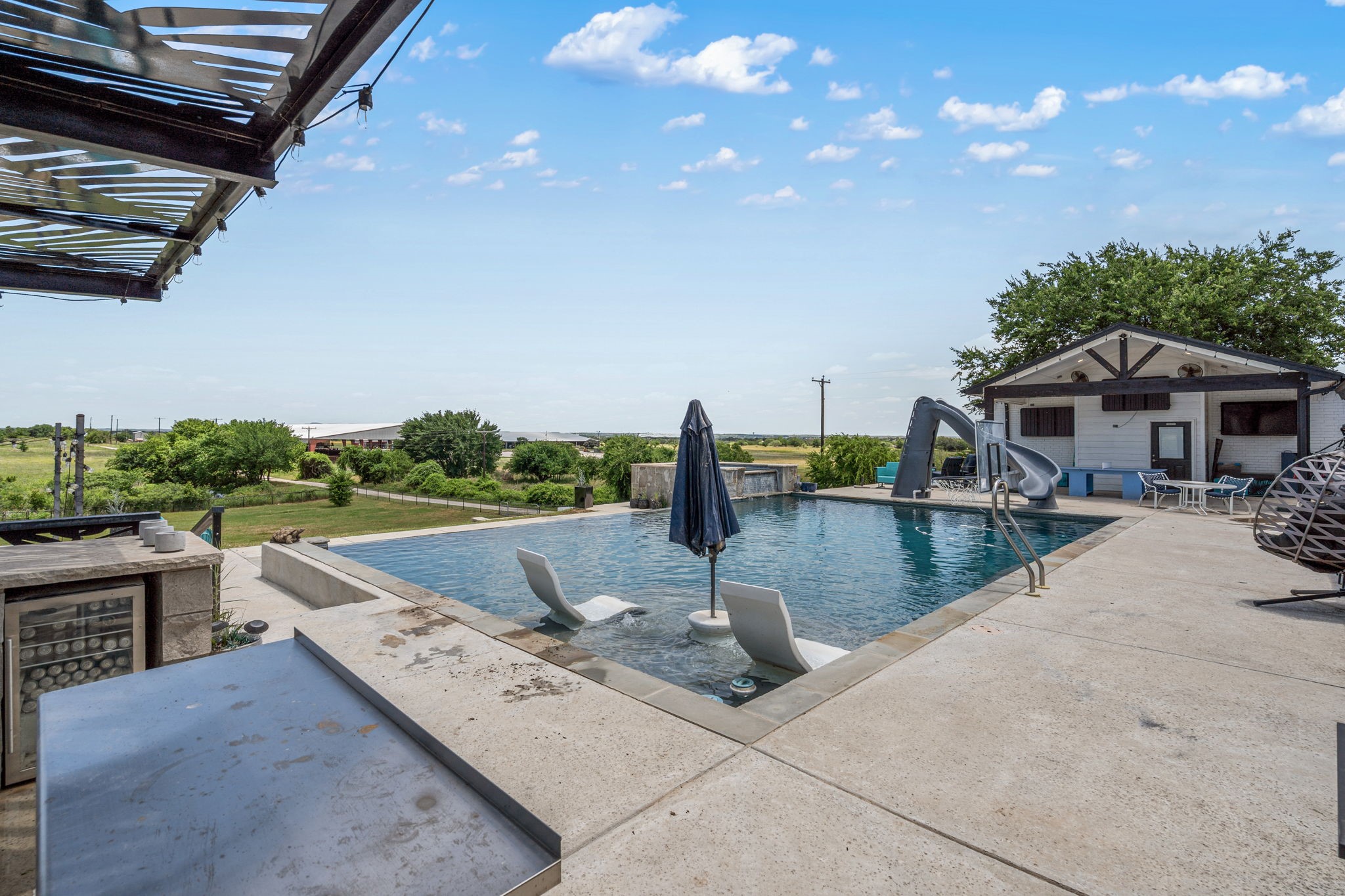 Tucked away in a premier Aledo ISD location, this exceptional 10-acre estate offers the perfect blend of modern living, thoughtful design, and unparalleled outdoor amenities. Properties like this rarely come available, making it a true gem for those seeking space, style, and serenity. Completely gutted to the studs and expanded, the single-story 4,479 SQFT home features 5 spacious bedrooms, 3.1 bathrooms, a dedicated office, large game room, flex space currently used as a gym, and a utility room with custom built-in dog kennels. The heart of the home is the open-concept kitchen, living, and dining area. The kitchen is a chef's dream with a built-in KitchenAid refrigerator, Jenn-Air wine cooler, Frigidaire oven and warming drawer, and plenty of prep and storage space. The living room boasts a wood-burning fireplace, flanked by floor-to-ceiling cabinetry and shelving--perfect for both display and storage. The primary suite offers a cozy fireplace, expansive walk-in shower, and a huge custom closet. A wired-in speaker system runs throughout the home, providing seamless audio for entertaining or everyday living. Step outside to your private resort: a 45,000-gallon, 9.5-foot-deep heated infinity-edge pool and hot tub, complete with outdoor kitchen, multiple TVs, and covered seating area--ideal for gatherings year-round. The covered batting cage, half basketball court, and sand volleyball court offer endless recreation options, while Turkey Creek feeds into a stocked pond just behind the house, perfect for fishing or relaxing. Enjoy stunning views from the oversized back patio and take advantage of the 30x25 three-car garage, offering ample storage. The home is filled with custom built-ins and a light, bright interior, designed for comfort and convenience throughout. This is a one-of-a-kind property that delivers both high-end living and the tranquility of nature