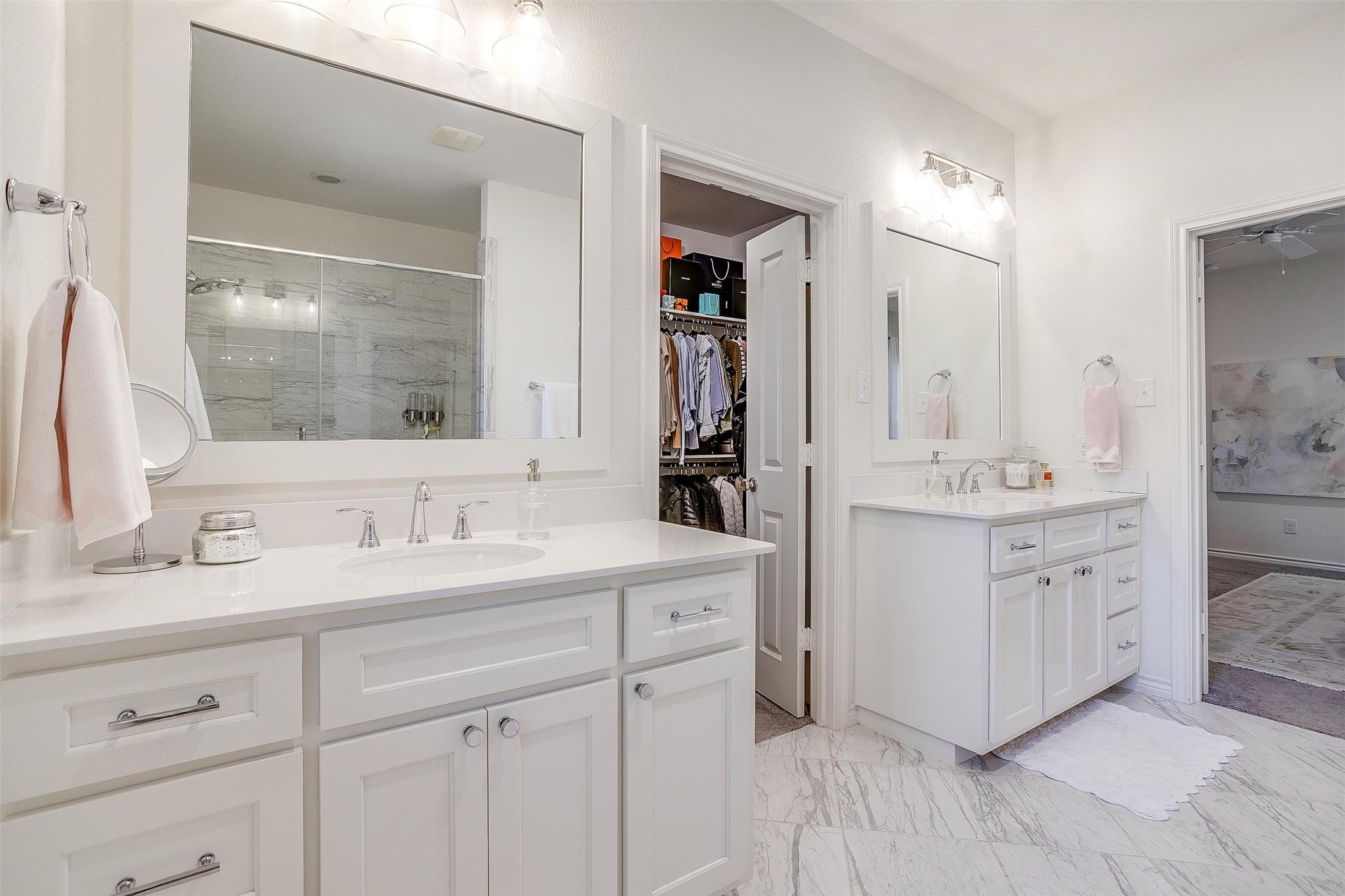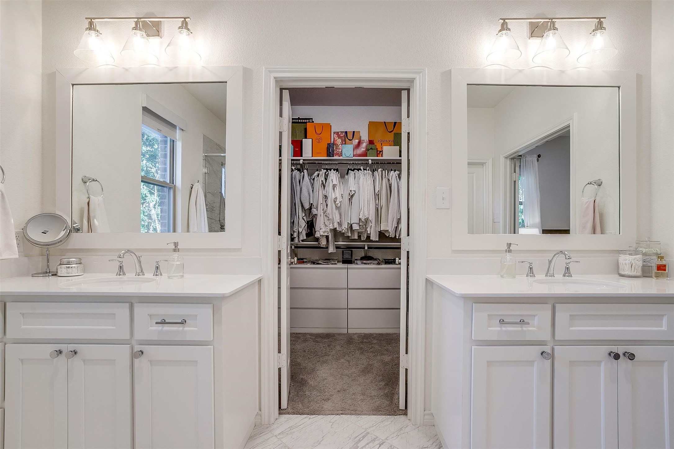 Upstairs, the primary suite offers two large walk-in closets, double vanities, and a spacious walk-in shower. A fully upgraded powder bath downstairs adds convenience for guests.