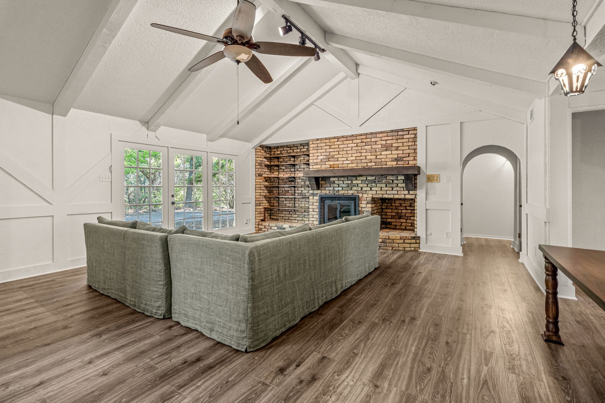 Inside, the open living room welcomes you with high ceilings, built-in shelving, and a large wood-burning fireplace that flows seamlessly into a bright sunroom--ideal for morning coffee, a playroom, or a creative studio. The kitchen and dining areas offer plenty of space for reimagining a modern layout or adding designer touches.