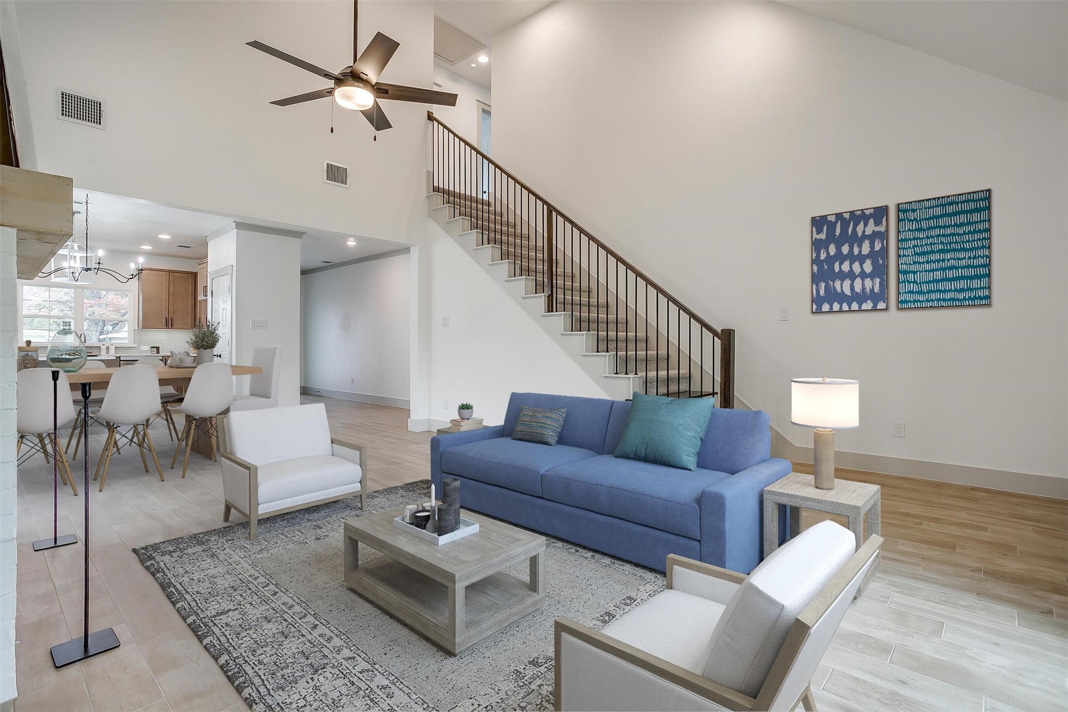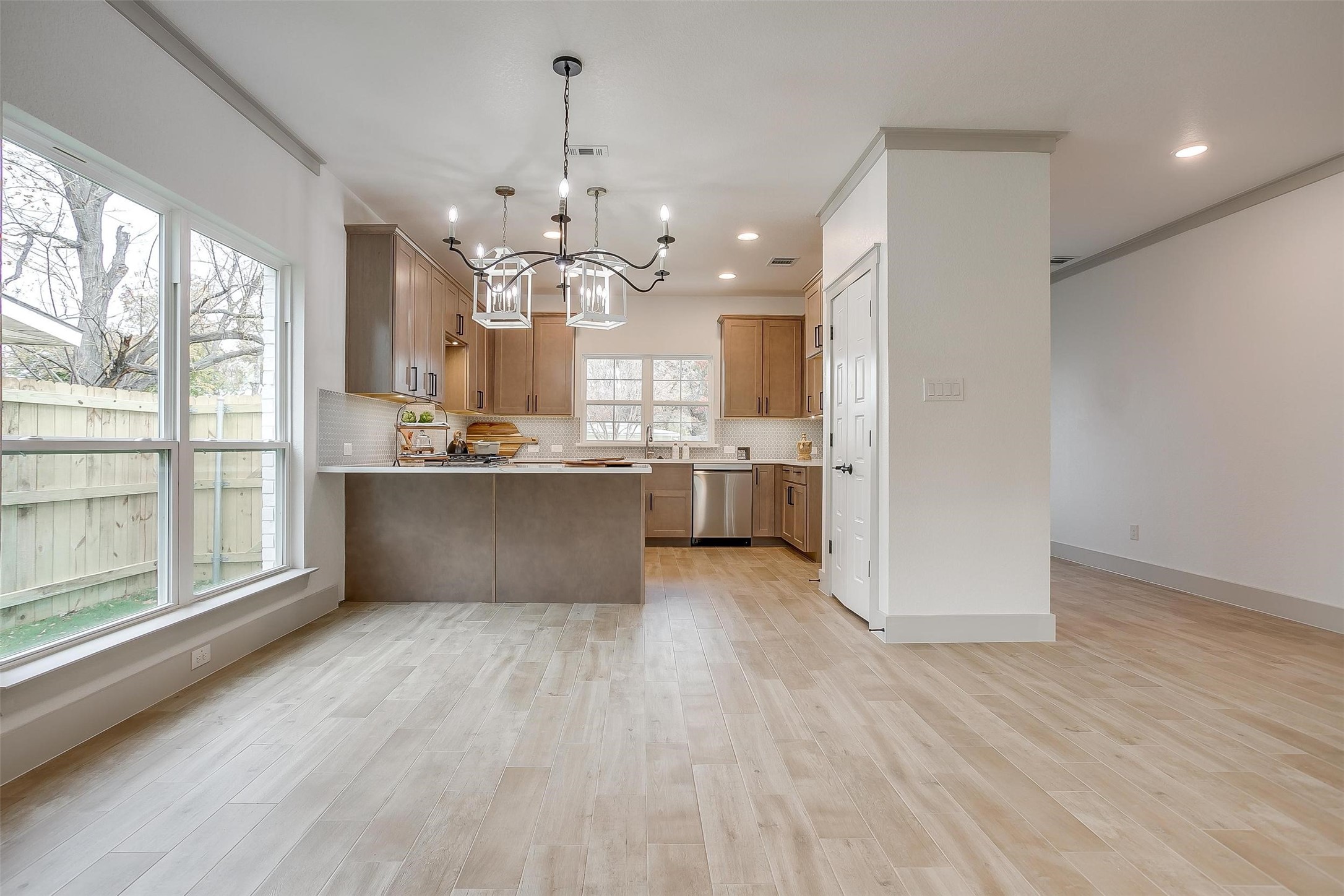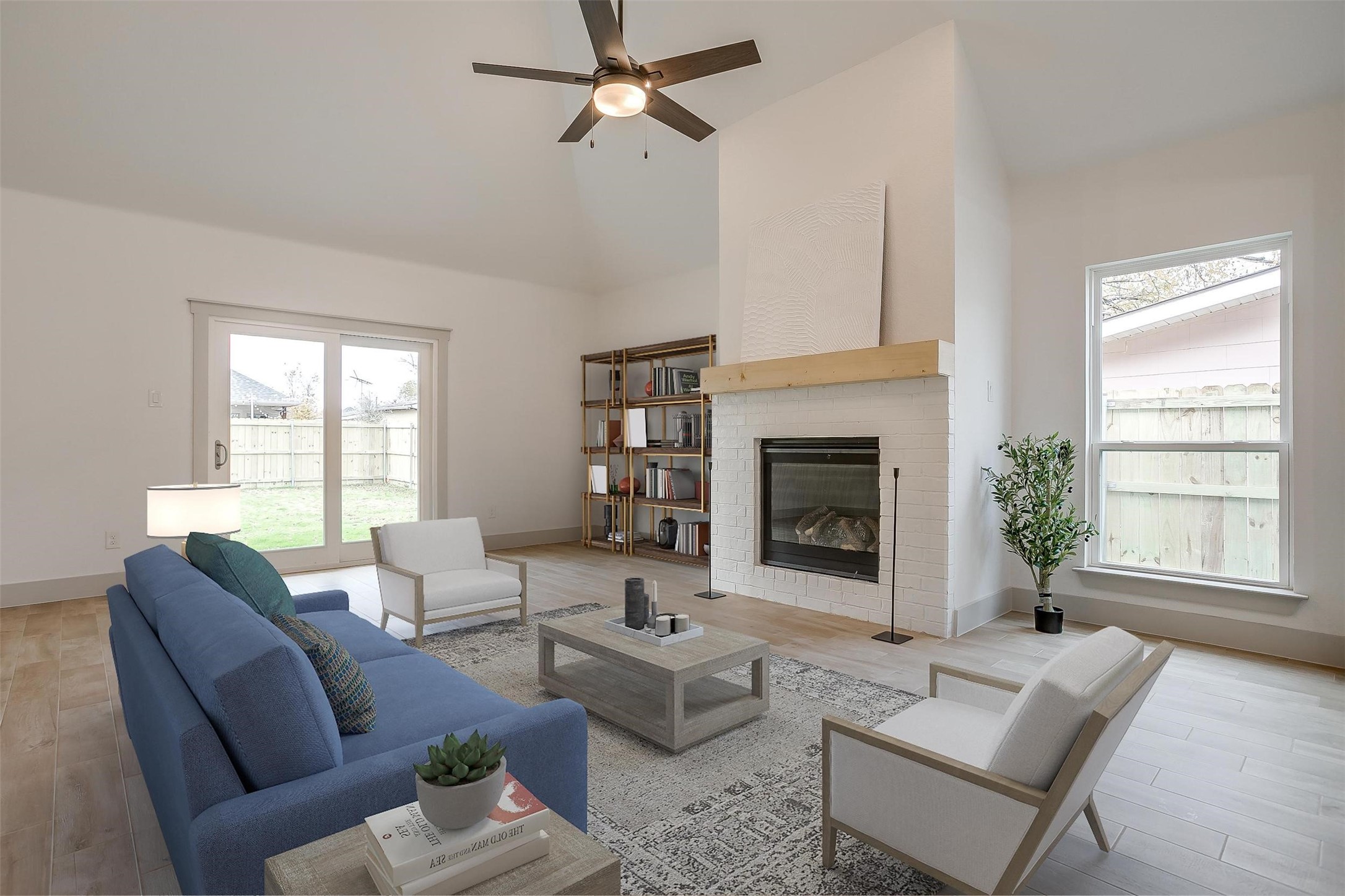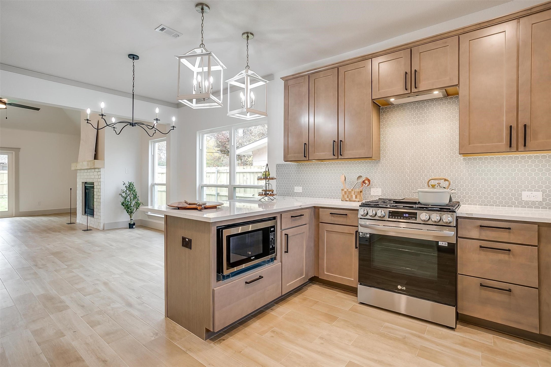 The heart of the home is the open-concept living area, featuring a cozy fireplace and a seamless flow into the chef's kitchen, boasting a gas range and premium finishes. With high ceilings, abundant natural light, and stylish touches, every corner exudes elegance.