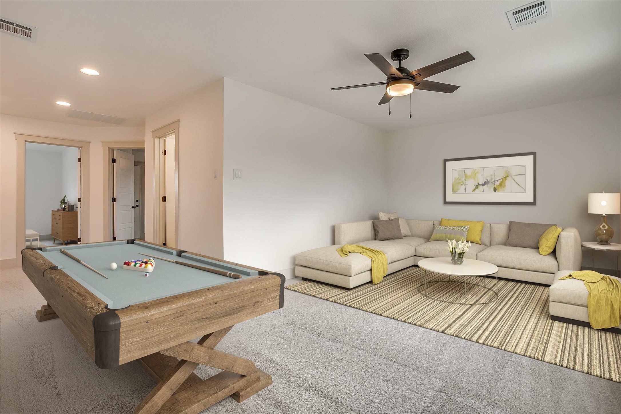 The thoughtfully designed layout features a spacious master suite on the main floor, complete with a spa-like ensuite bath, ensuring a private retreat. Upstairs, you'll find three additional bedrooms, a game room perfect for movie nights or playtime, and beautifully crafted details throughout.