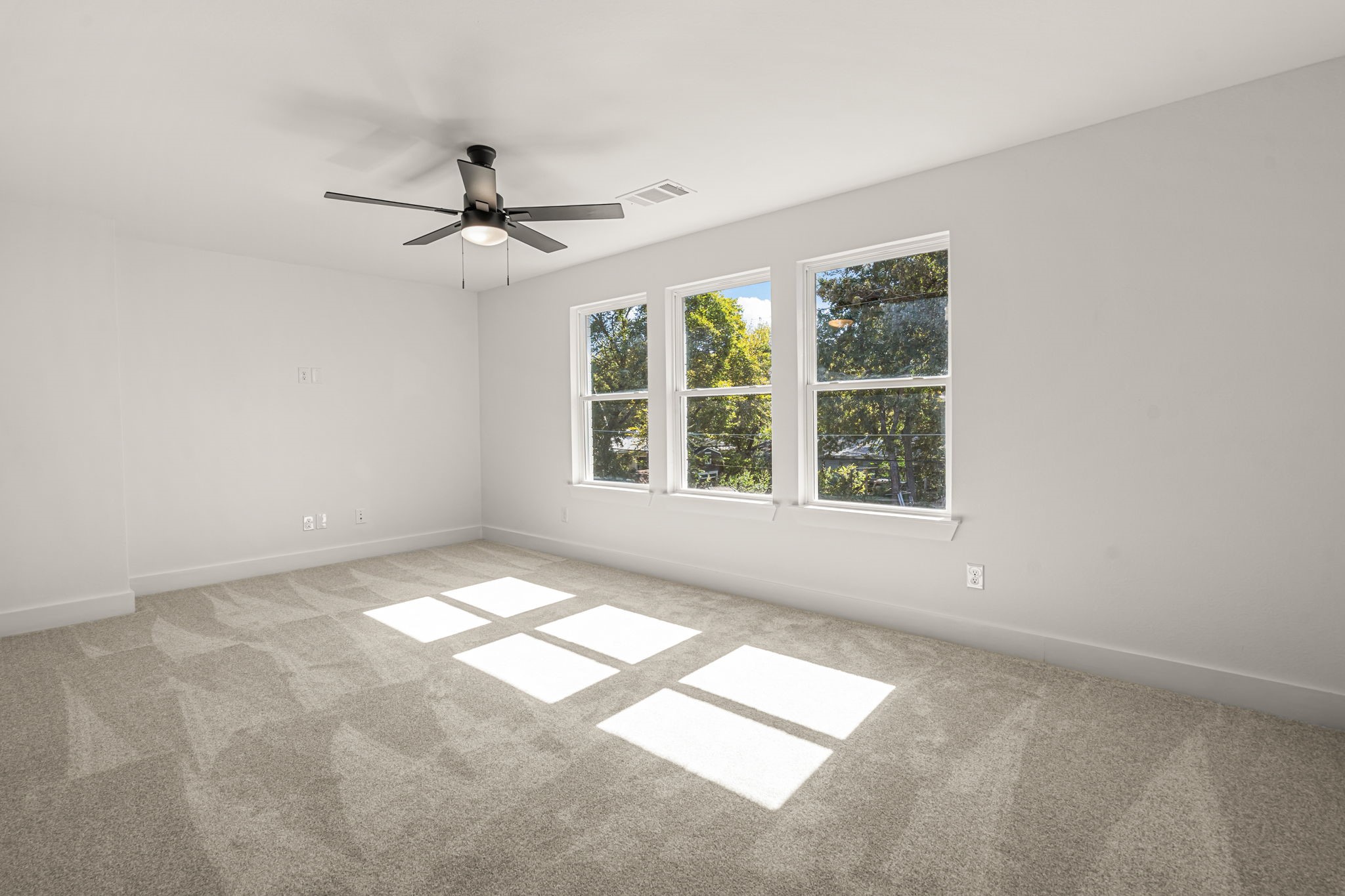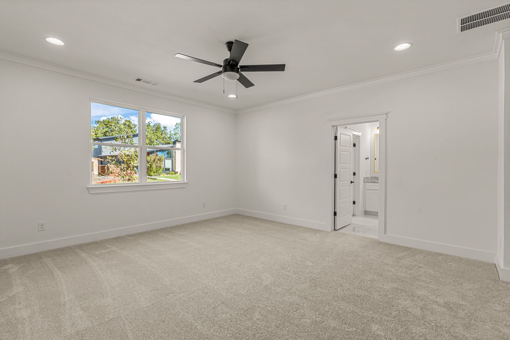The luxury primary suite is designed for comfort and relaxation, complete with a spa-inspired bath and generous closet space. Ceiling fans are installed throughout for year-round comfort, and the large backyard provides plenty of space for outdoor entertaining, play, or future additions.