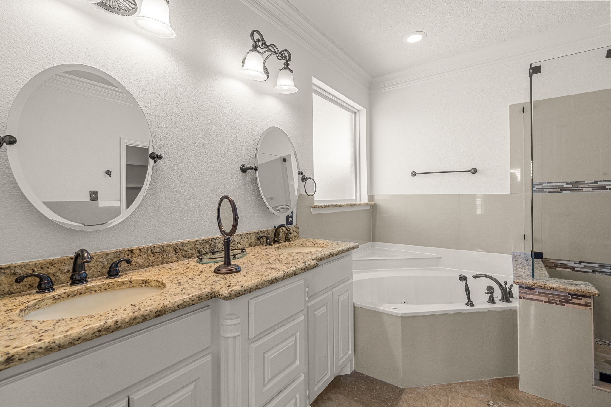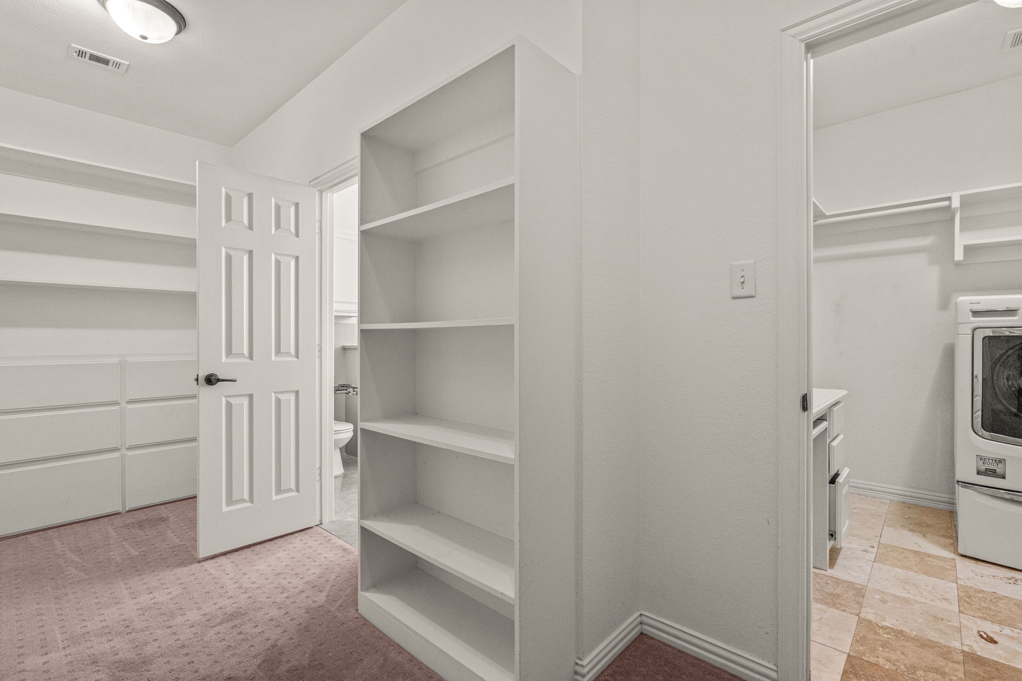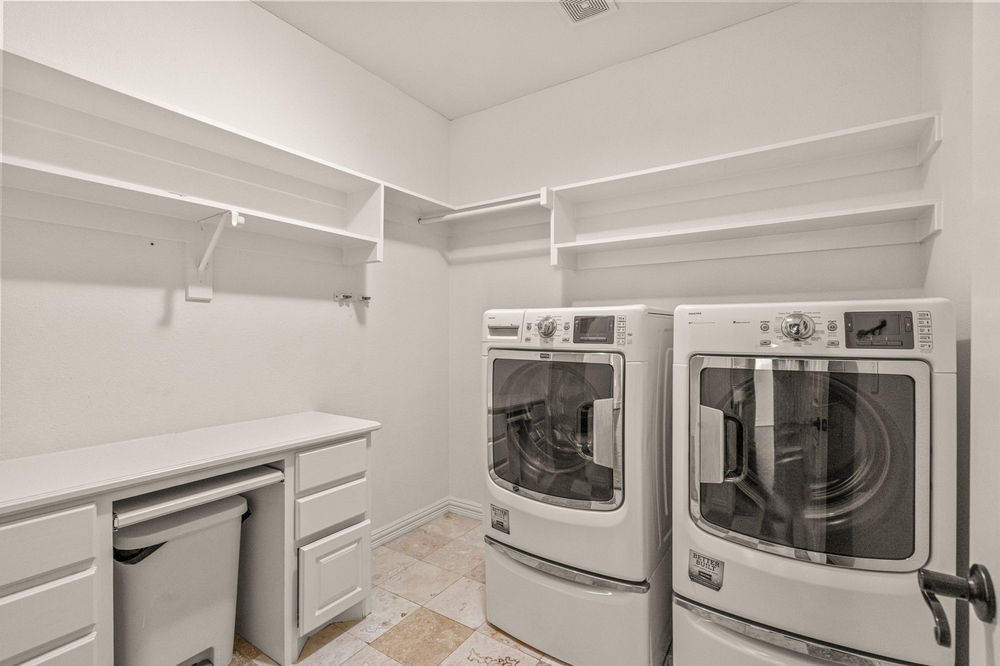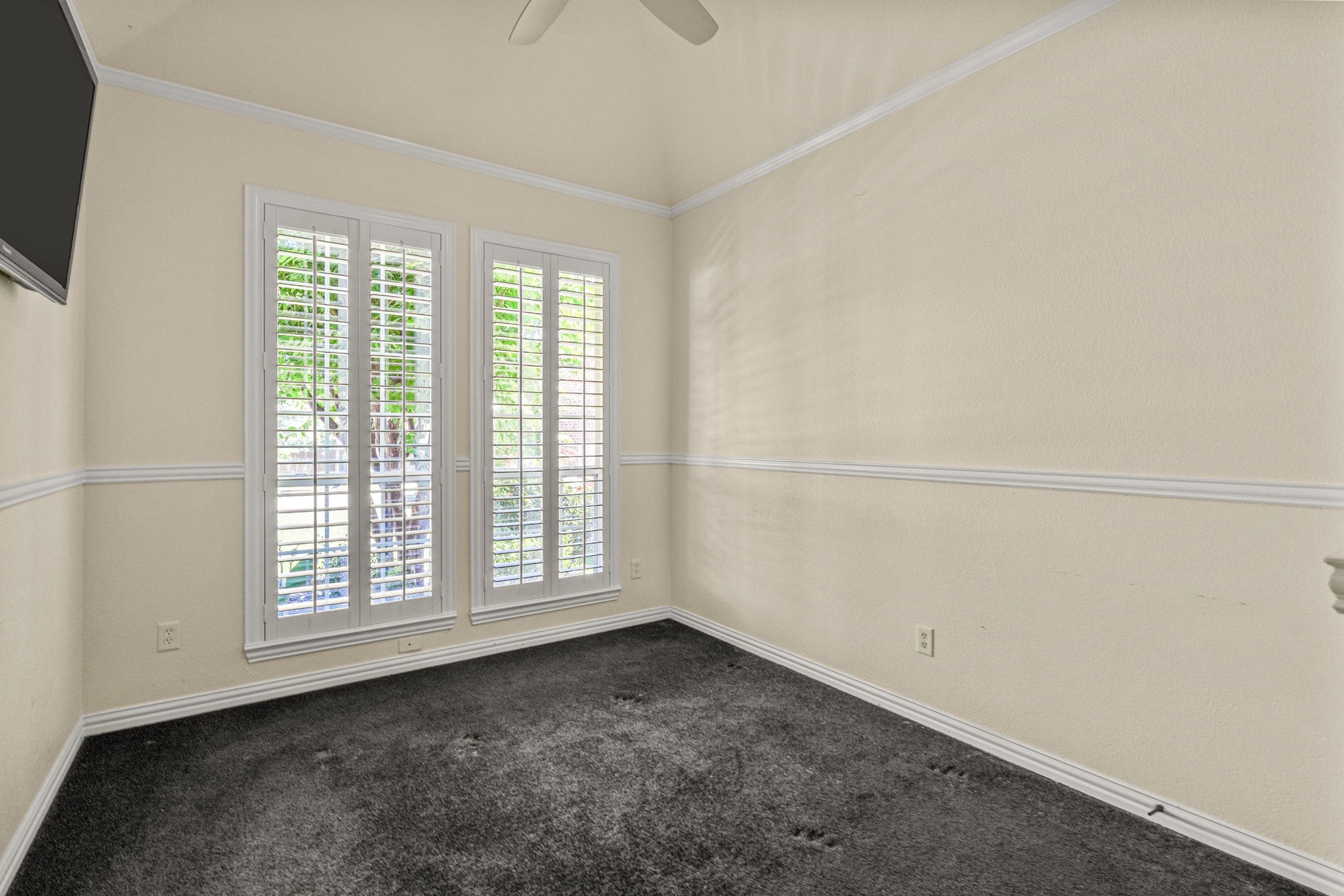 The private primary suite is tucked away from the secondary bedroom and offers a peaceful retreat with a spacious layout, walk-in closet, ensuite bath, and direct access to the utility room for added convenience. The additional bedroom provides flexibility for guests, a home office, or family members.