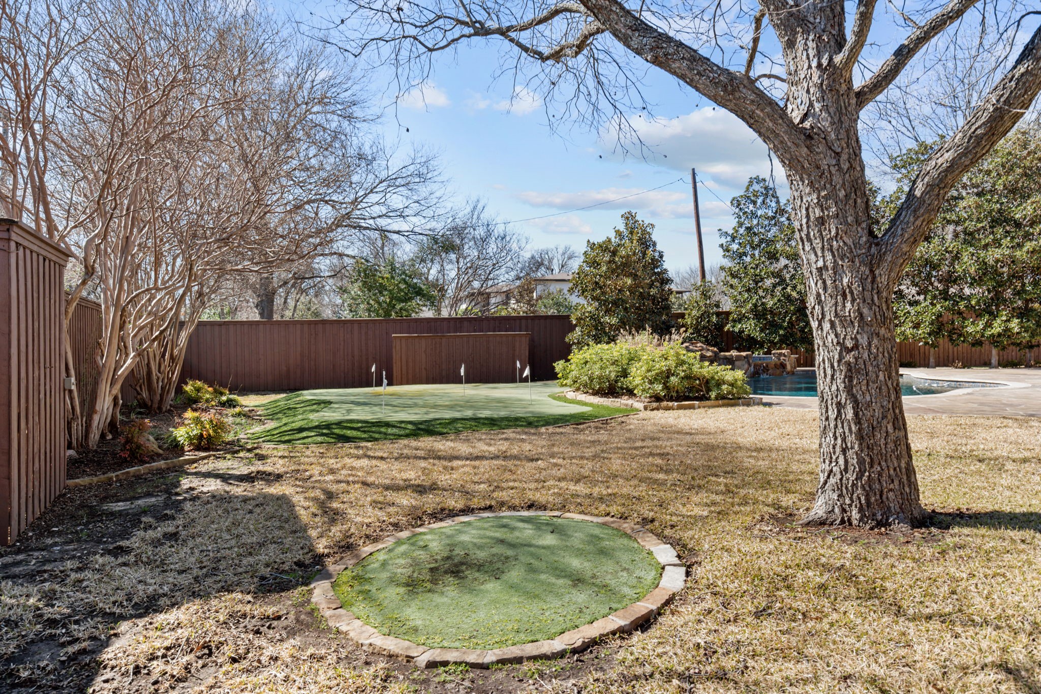 Discover luxury living in the coveted Forest Hills neighborhood! The expansive .57-acre lot is adorned with large, majestic trees, creating a tranquil and private atmosphere. This exquisite home is a dream come true with its chef's kitchen and a wet bar featuring convenient refrigerator drawers. Movie nights are elevated in the dedicated theater room, offering the perfect entertainment spot. The proximity to the Dallas Arboretum and White Rock Lake makes leisurely strolls a daily delight. Practicality meets luxury with a 3-car garage and generously sized rooms throughout. Step into the outdoor oasis, complete with a living room space equipped with a TV, DCS grill, and fridge. Entertaining is a joy with a lagoon-style pool and a putting green for some friendly competition. This home truly embodies the epitome of sophisticated living paired with the comforts of a serene retreat.