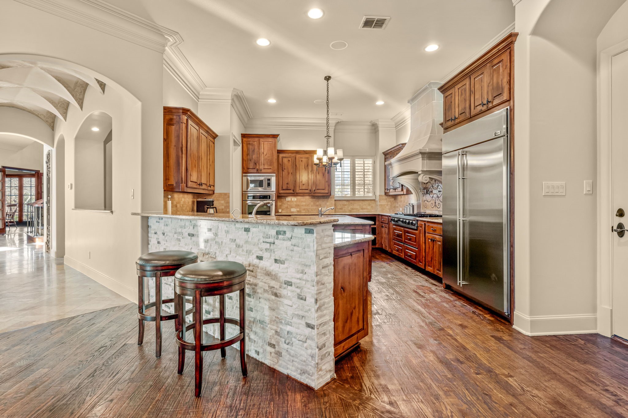 • Appliances: Some Gas Appliances, Built-In Gas Range, Built-In Refrigerator, Convection Oven, Double Oven, Dishwasher, Disposal, Gas Water Heater, Microwave, Plumbed For Gas, Refrigerator, Warming Drawer