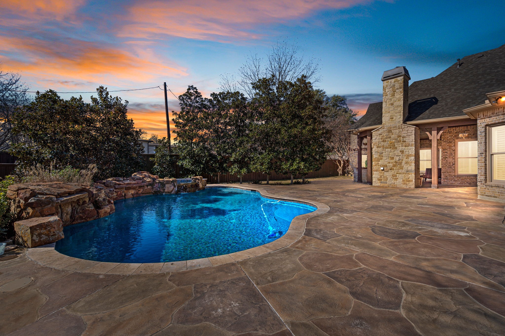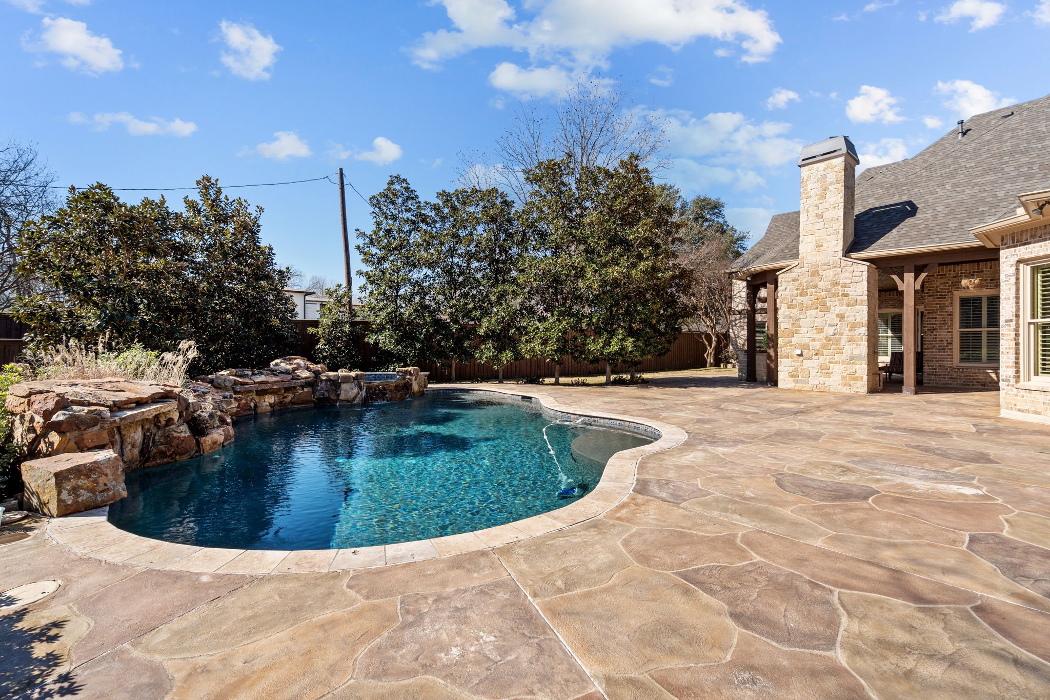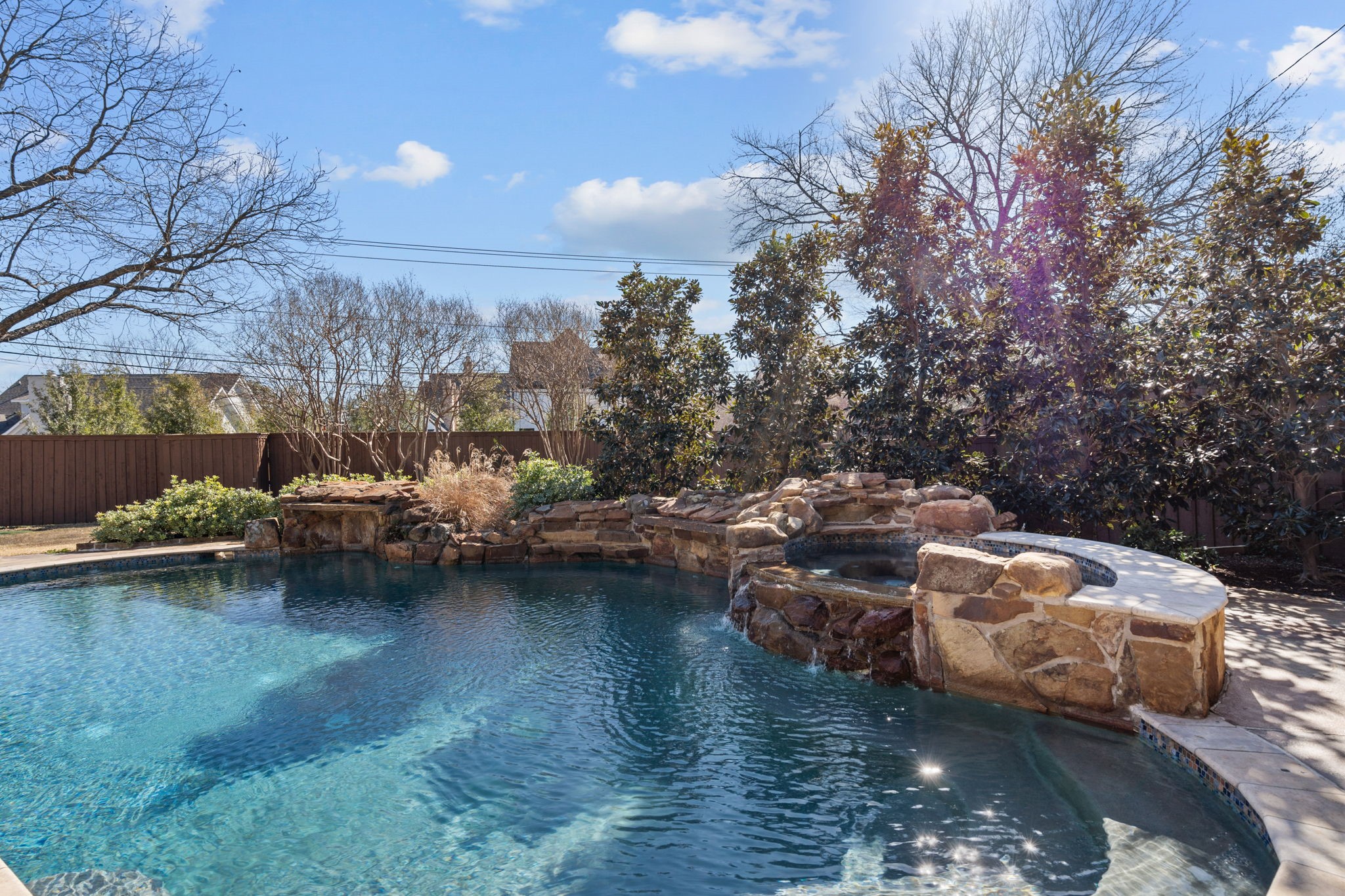 • Pool: Gunite, In Ground, Outdoor Pool, Pool, Private, Pool Sweep, Pool/Spa Combo, Waterfall, Water Feature