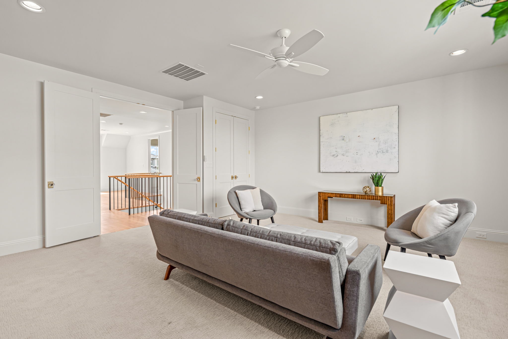 From the moment you arrive, the home's striking curb appeal and professionally landscaped grounds set the tone. Inside, an open-concept layout creates a seamless flow between the main living areas, ideal for both entertaining and comfortable daily living. The spacious primary living area is complemented by a secondary living space, providing flexibility for a media room, game room, or private retreat.