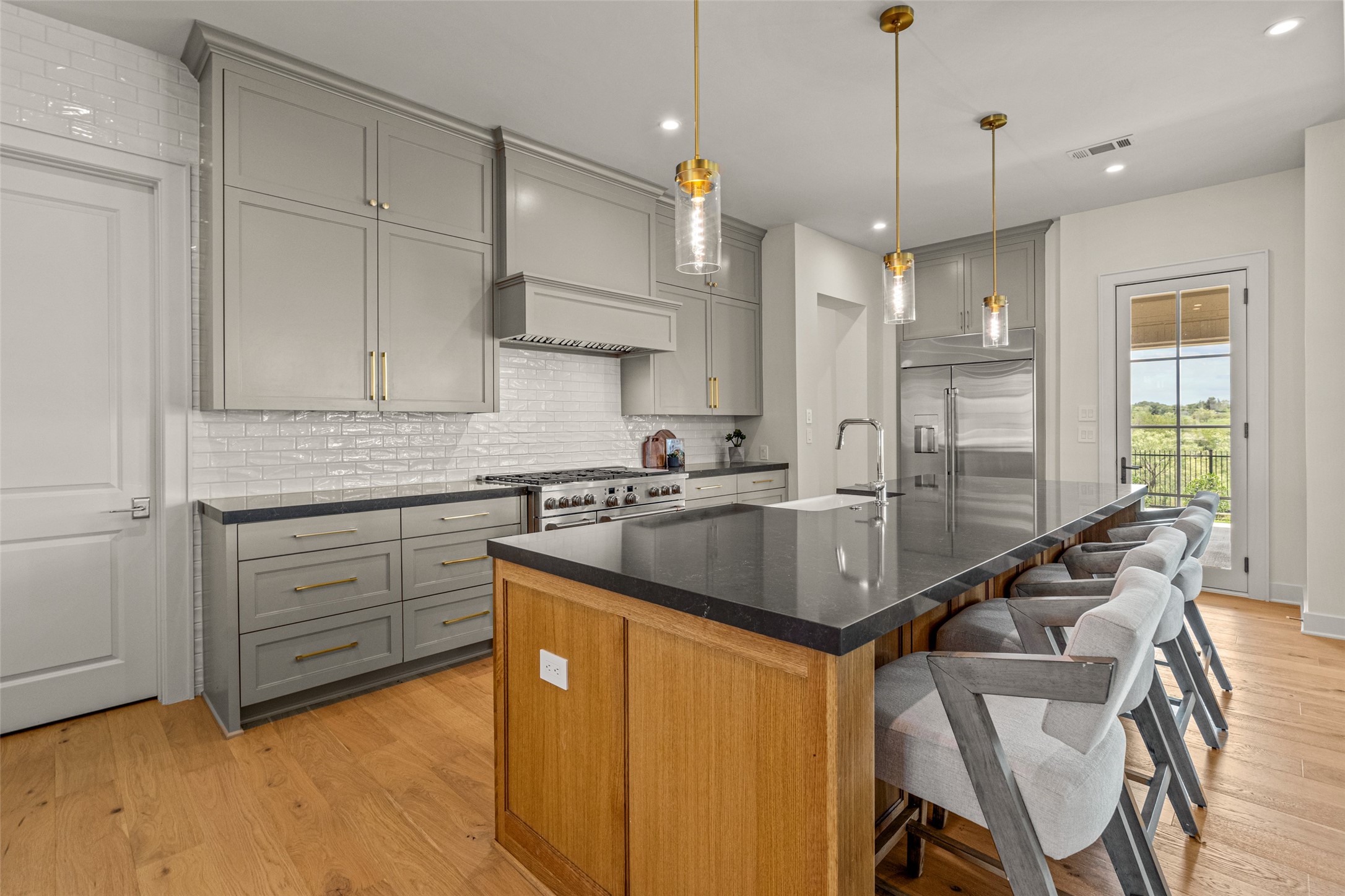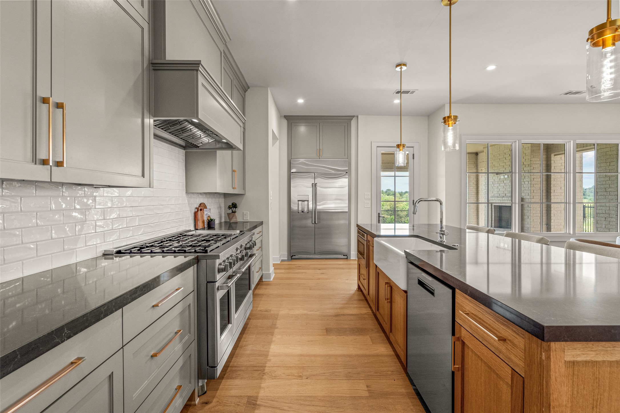 Appliances: Some Gas Appliances, Built-In Refrigerator, Double Oven, Gas Cooktop, Disposal, Plumbed For Gas, Range, Refrigerator, Some Commercial Grade, Vented Exhaust Fan