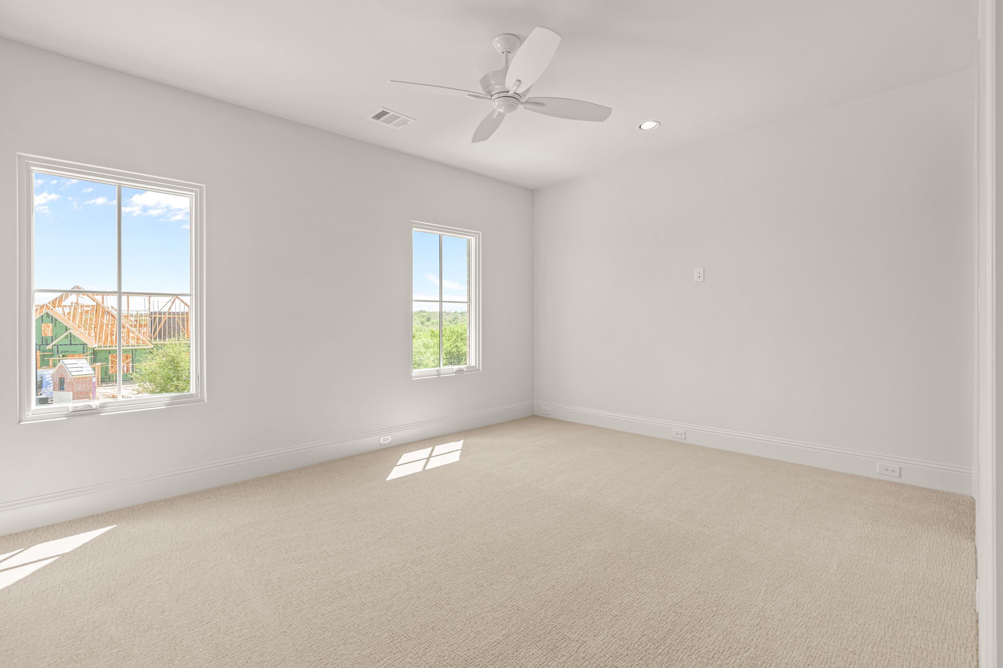 The primary suite is designed as a true retreat, featuring a spa-like bath and a custom walk-in closet. Each additional bedroom is well-appointed with its own walk-in closet and convenient access to a full bath, ensuring comfort and versatility throughout.