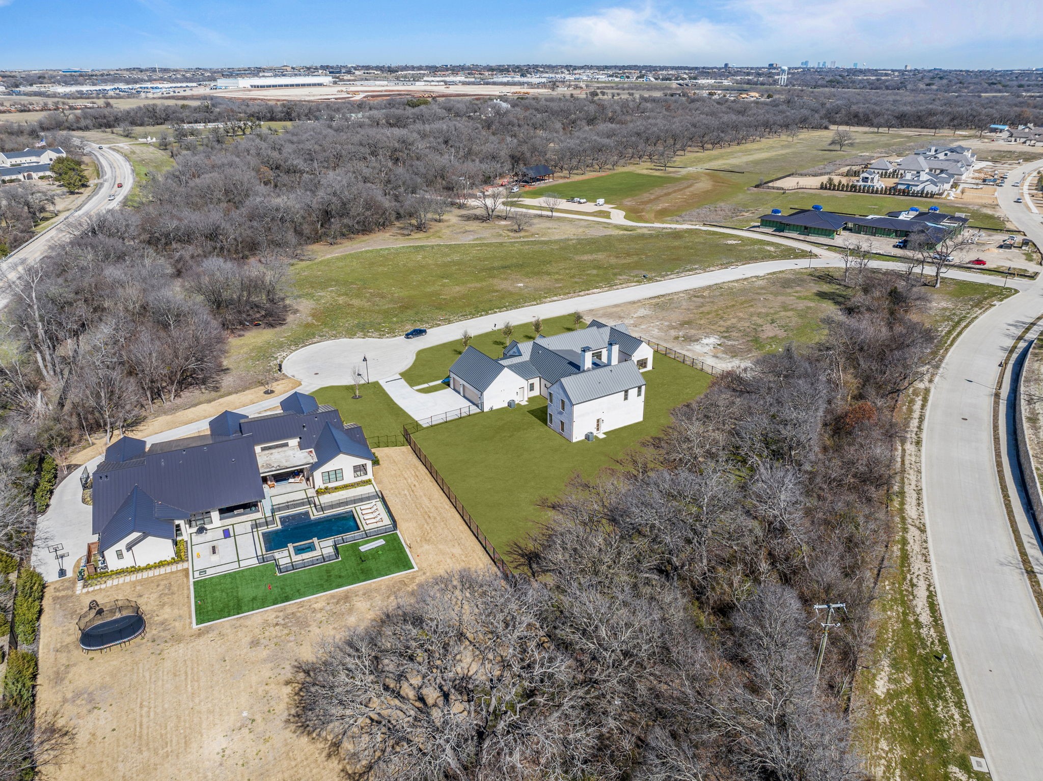 Olerio Homes presents an extraordinary new construction in the prestigious, gated community of Montrachet. Nestled on a sprawling 1.02-acre lot, this 5,775 SF estate offers an unparalleled blend of sophistication, comfort, and security, with 24-hour gated access ensuring the utmost privacy. Thoughtfully designed with high-end finishes throughout, this stunning residence features a spacious main floor, where formal and casual dining areas create an inviting atmosphere for entertaining. A versatile sitting area, enclosed by elegant French doors, seamlessly blends style and function, while a discreet workspace, hidden behind pocket doors, provides a private retreat for productivity. A guest suite with an adjoining living area--or an optional game room with a wet bar--offers flexibility to suit your lifestyle. The open-concept gourmet kitchen, complete with a separate prep kitchen and top-tier appliances, flows effortlessly into the expansive living area, where built-ins, a fireplace, and walls of glass frame breathtaking backyard views. A powder bath and laundry room complete the first level. Upstairs, two additional ensuite bedrooms and a loft-style living area provide luxurious comfort and privacy for family and guests alike. Designed for both elegance and functionality, this exceptional Olerio Homes residence redefines luxury living in one of Fort Worth's most coveted communities. Experience the unparalleled lifestyle that Montrachet has to offer--where serenity, exclusivity, and timeless design come together in perfect harmony.